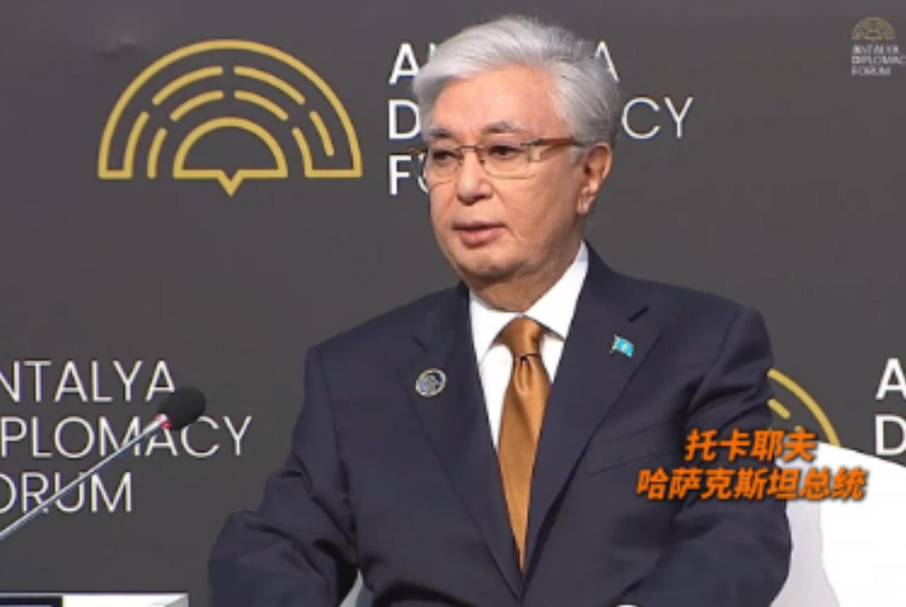 当地时间 4 月 17 号,托卡耶夫出席在土耳其安塔利亚举办的第五届外交论坛。