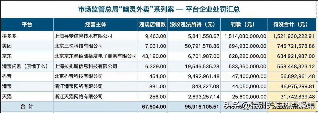 2026年4月17日,国家市场监管总局对拼多多(上海寻梦公司)开出15.22亿元天价罚单,属“幽灵外卖”系列整治案,创下国内平台经济食安类处罚纪录。