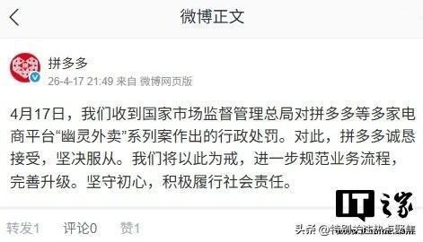 拼多多当晚声明:诚恳接受、坚决服从、全面整改。