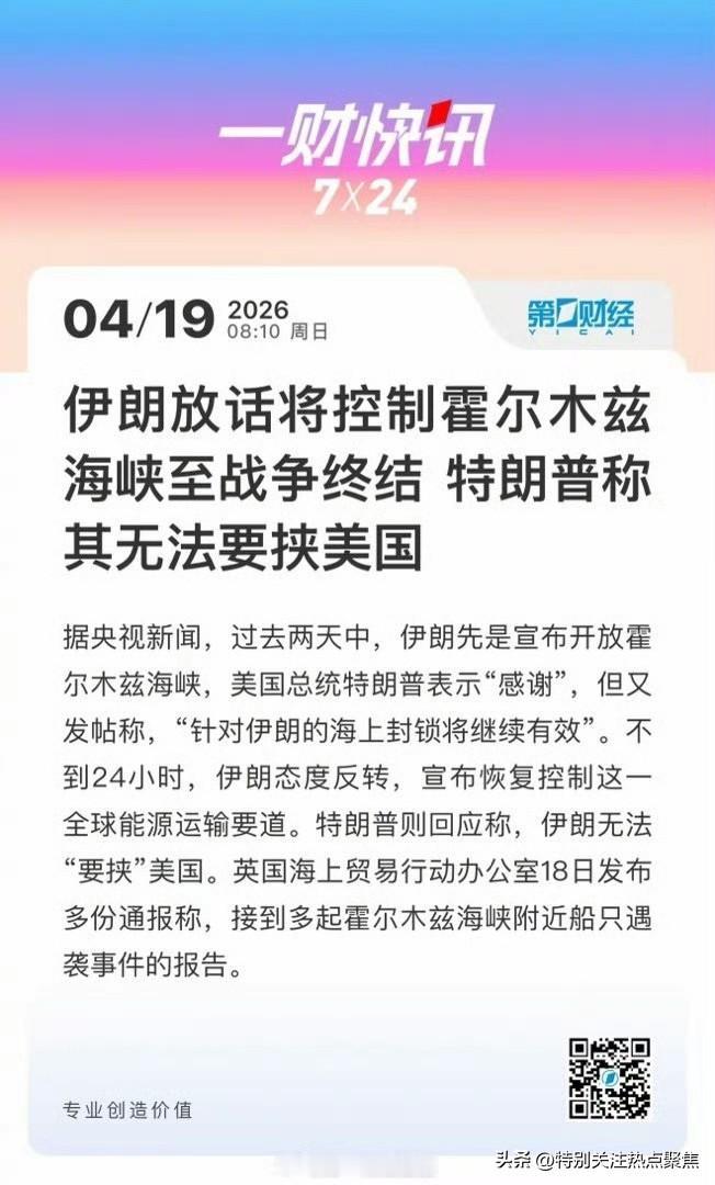 对于网传特朗普所谓“终于可以让伊朗灭亡”的言论,从当前公开信息来看,其真实性存疑。实际上,特朗普的回应更侧重于对伊朗封锁海峡行动进行威慑表态。并且,美伊双方近期围绕霍尔木兹海峡的博弈呈现出反复波动的态势。