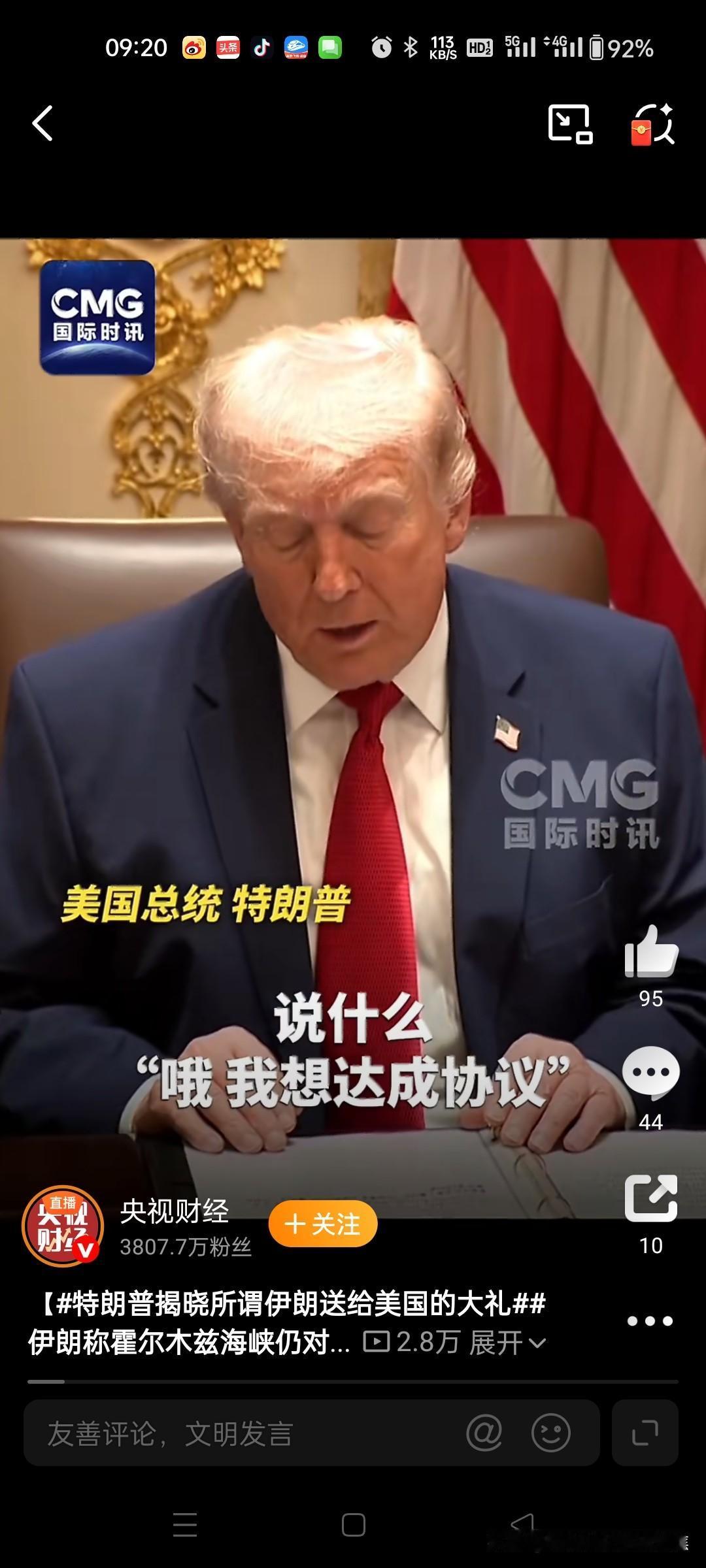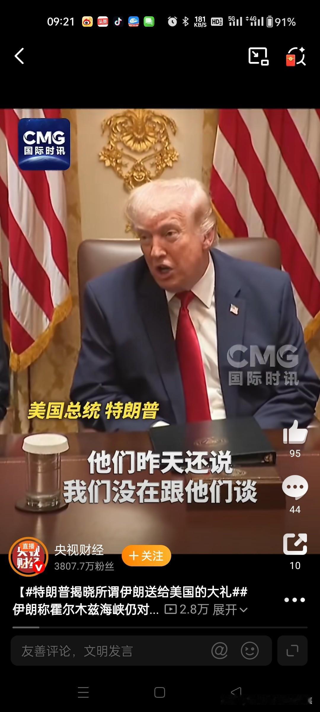 伊朗封锁海峡特朗普回应:“伊朗无法要挟美国”,还称美伊“正在进行非常好的对话”。