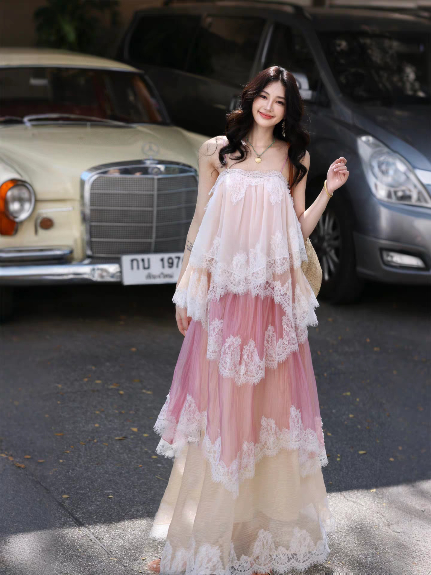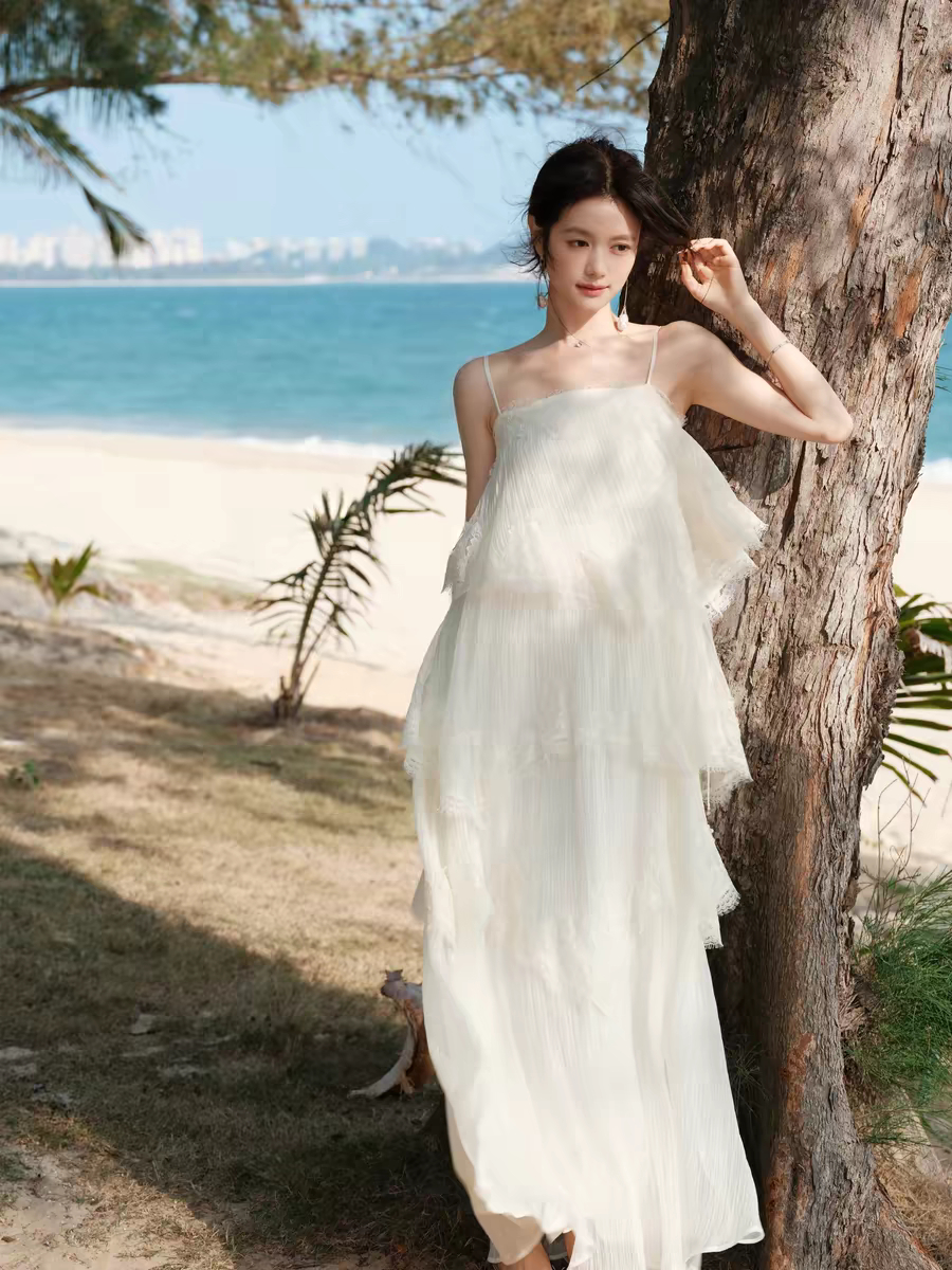 蕾丝裙造型白色蕾丝连衣裙穿搭蕾丝连衣裙白色纱质蓬蓬裙穿搭粉色蕾丝连衣裙