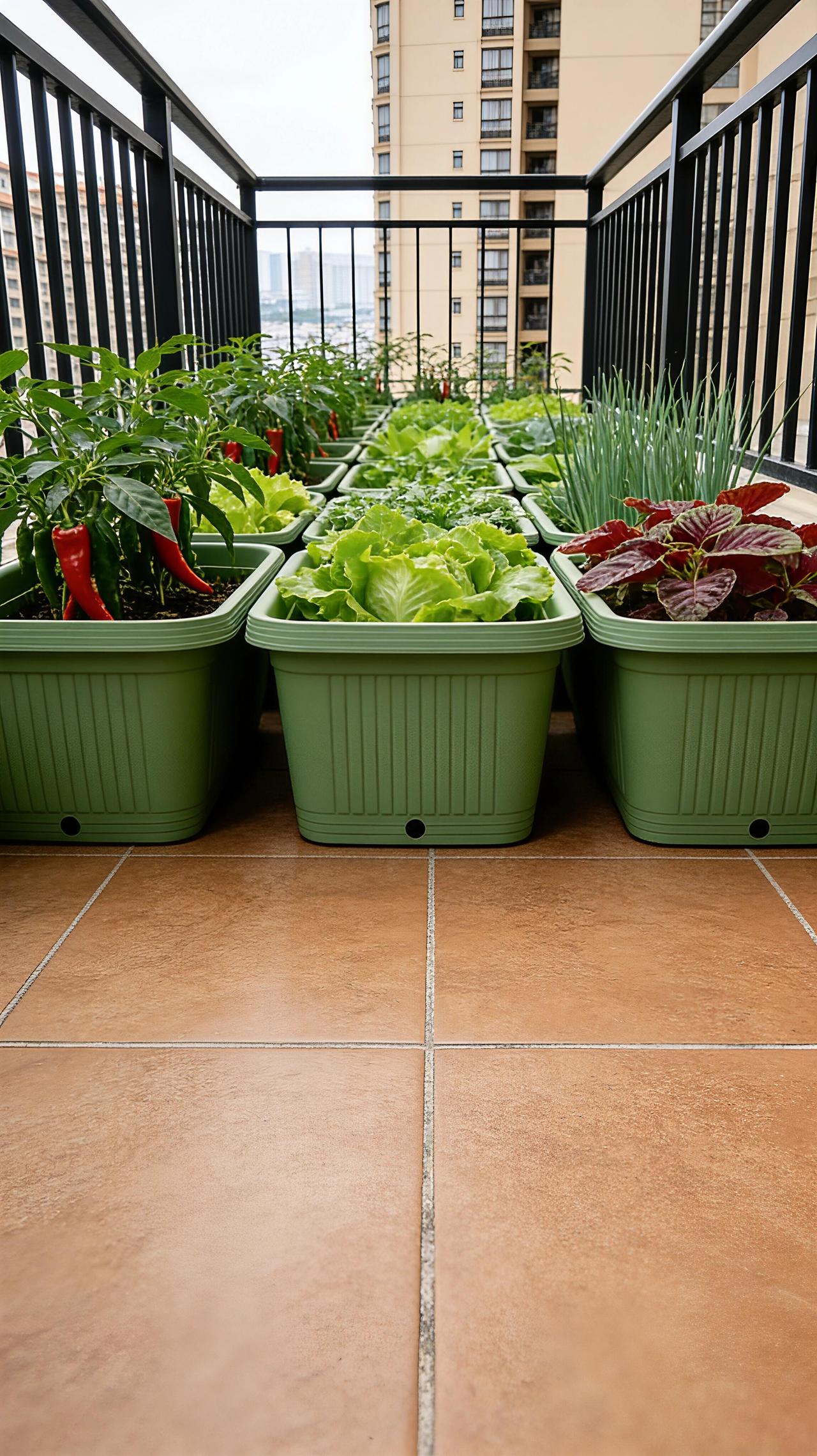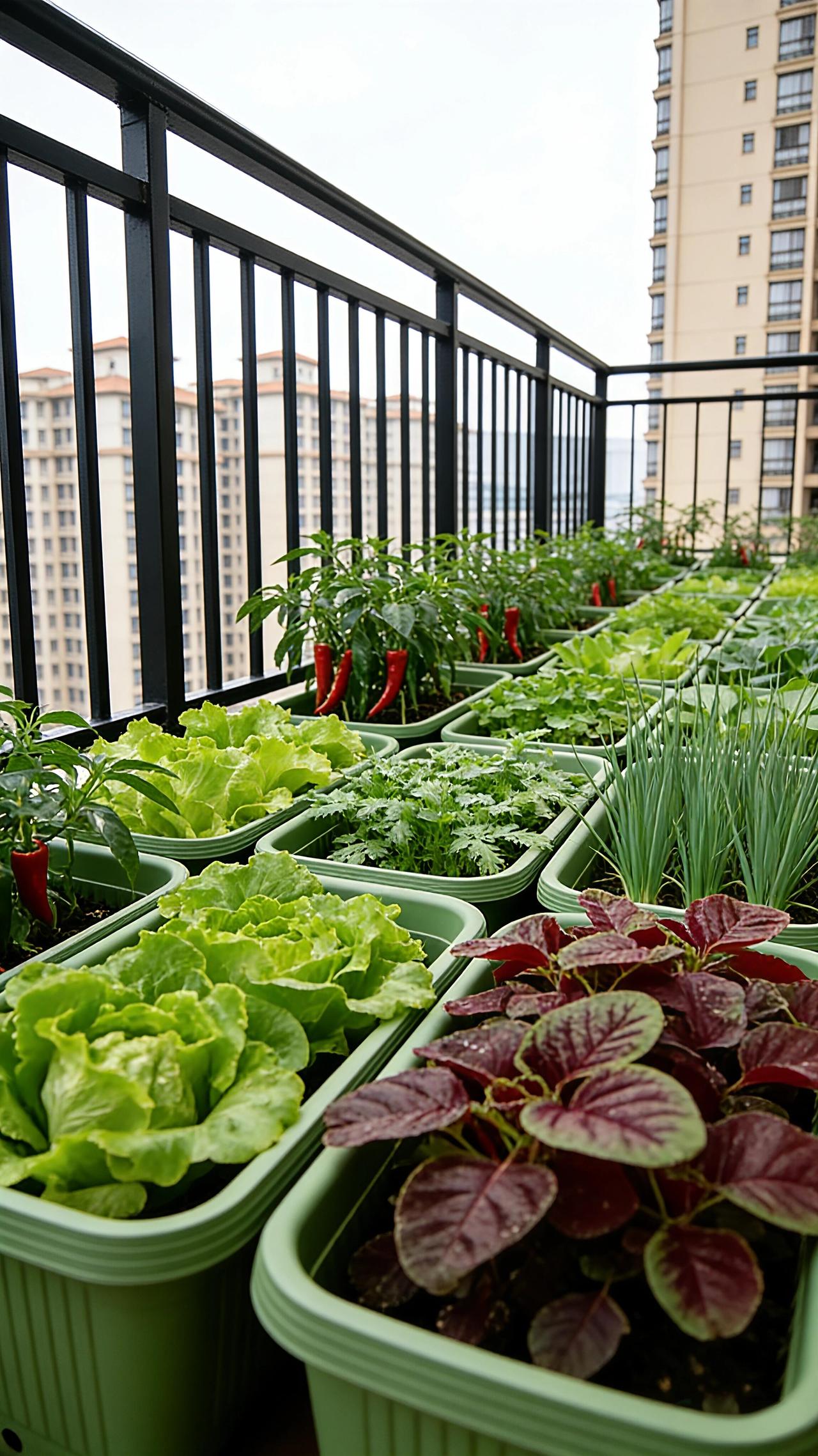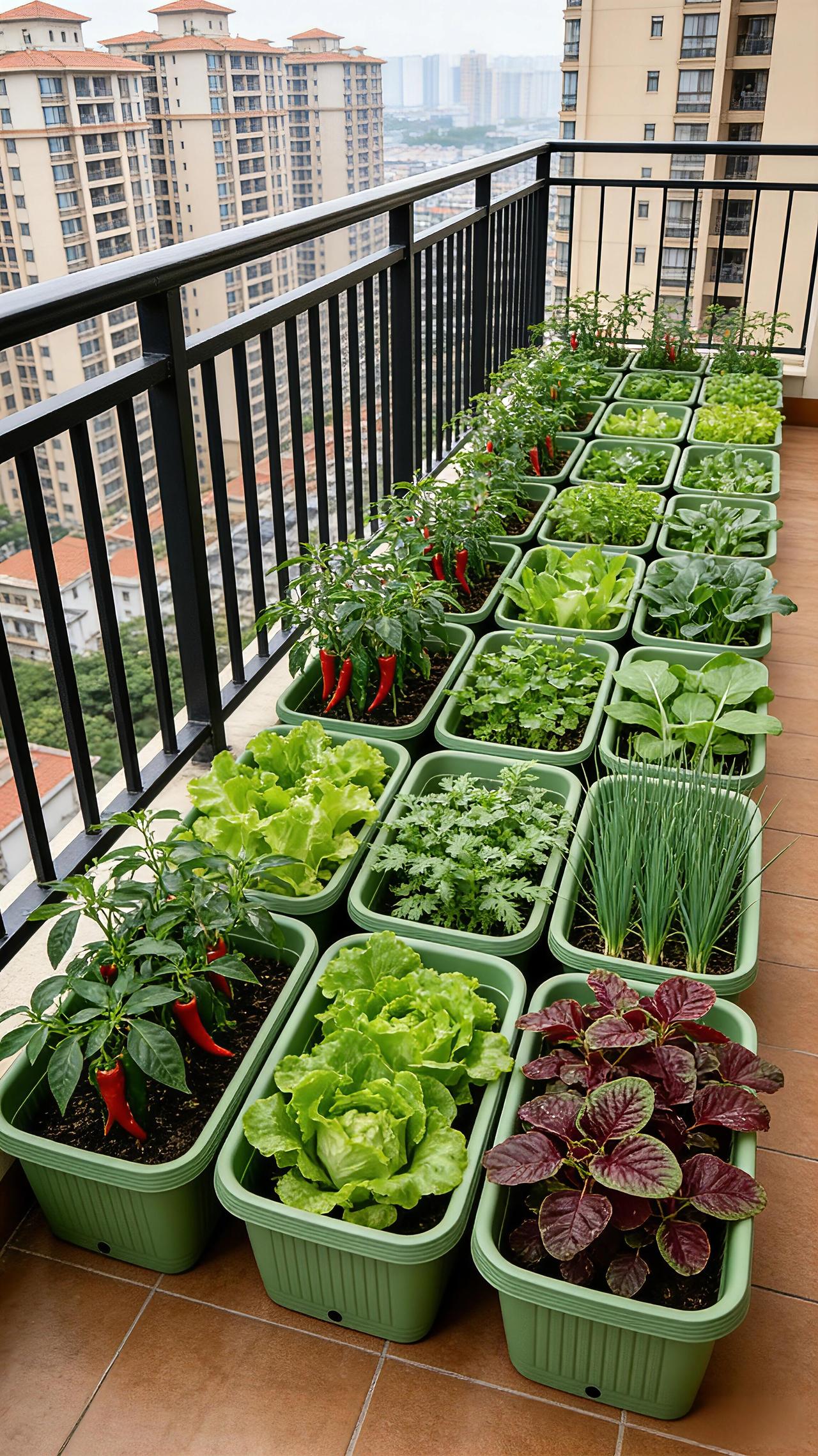 高层阳台摆上长条种植盆,辣椒、小葱、生菜和各类绿叶菜应有尽有,现吃现摘,新鲜又方便,再也不用急急忙忙去超市买高价菜了!