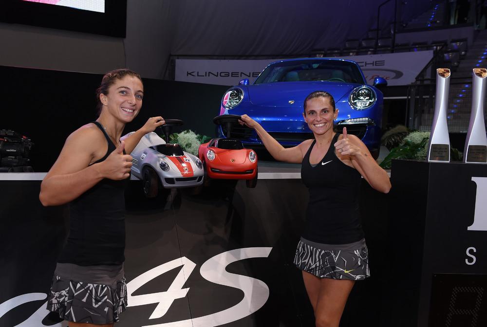 是时候翻出2014年时斯图加特女双冠军的图了……当时也是有迷你保时捷可以开的。