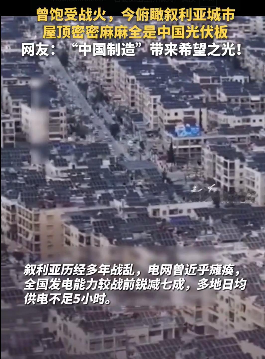 注意看图二图三。你没看错,那些叙利亚民房屋顶上,布的密密麻麻的太阳光伏板,全部是中国的。