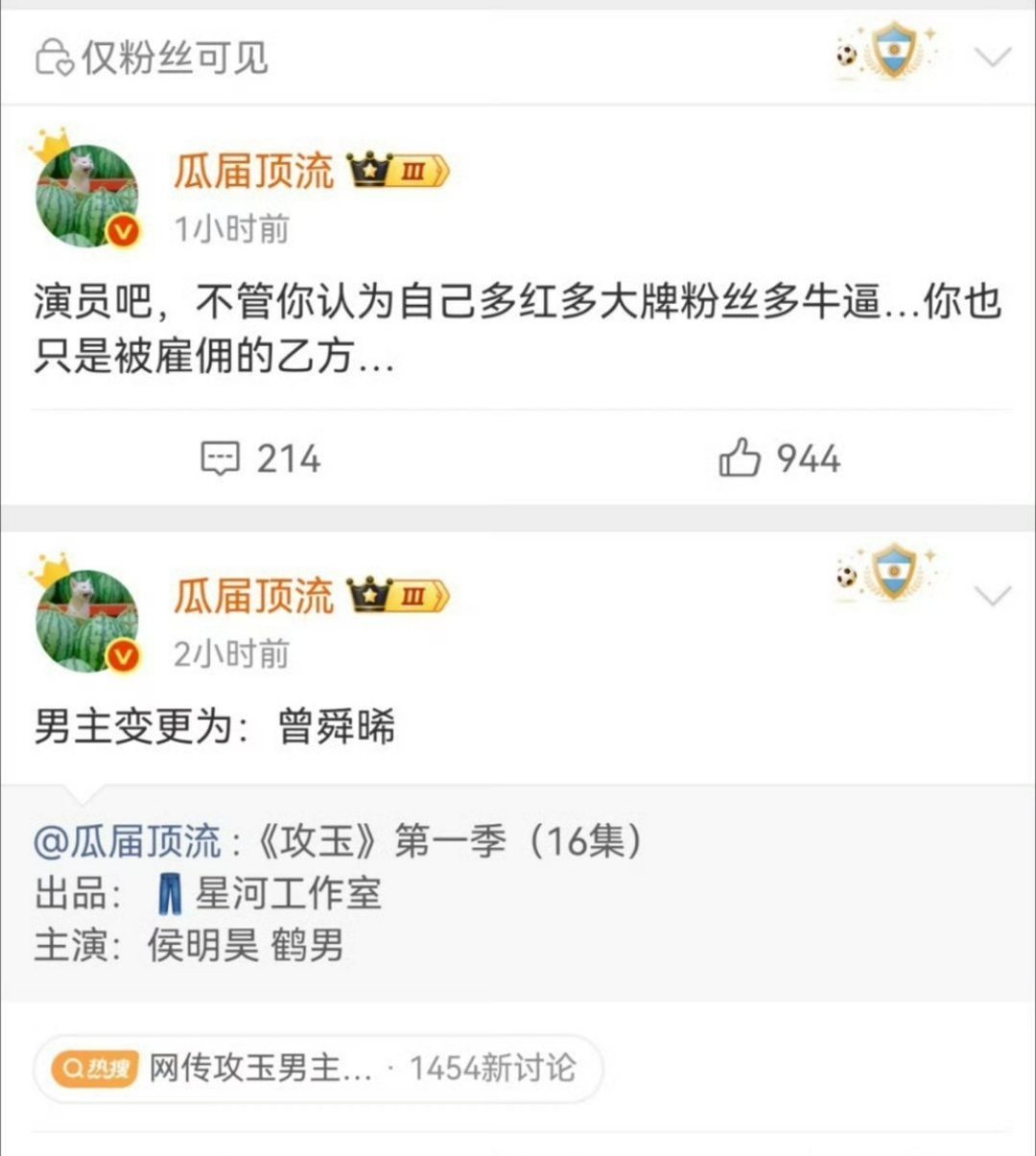 《攻玉》里有人辞演了,用了辞演这个词,估计是一番男主跑路了,这剧坚持要用一个0?