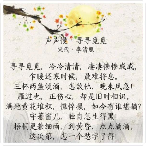 2. 李清照《声声慢·寻寻觅觅》(亡国破家、孤老无依)