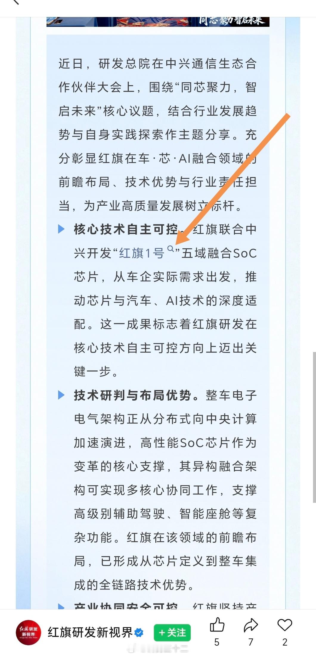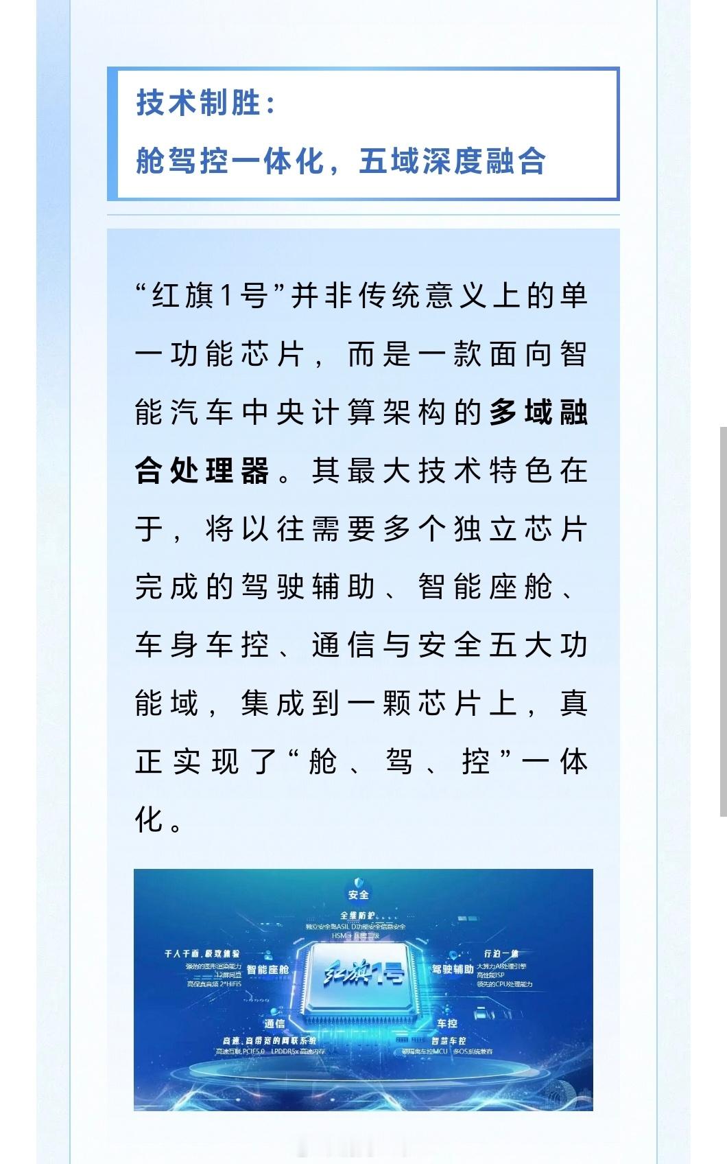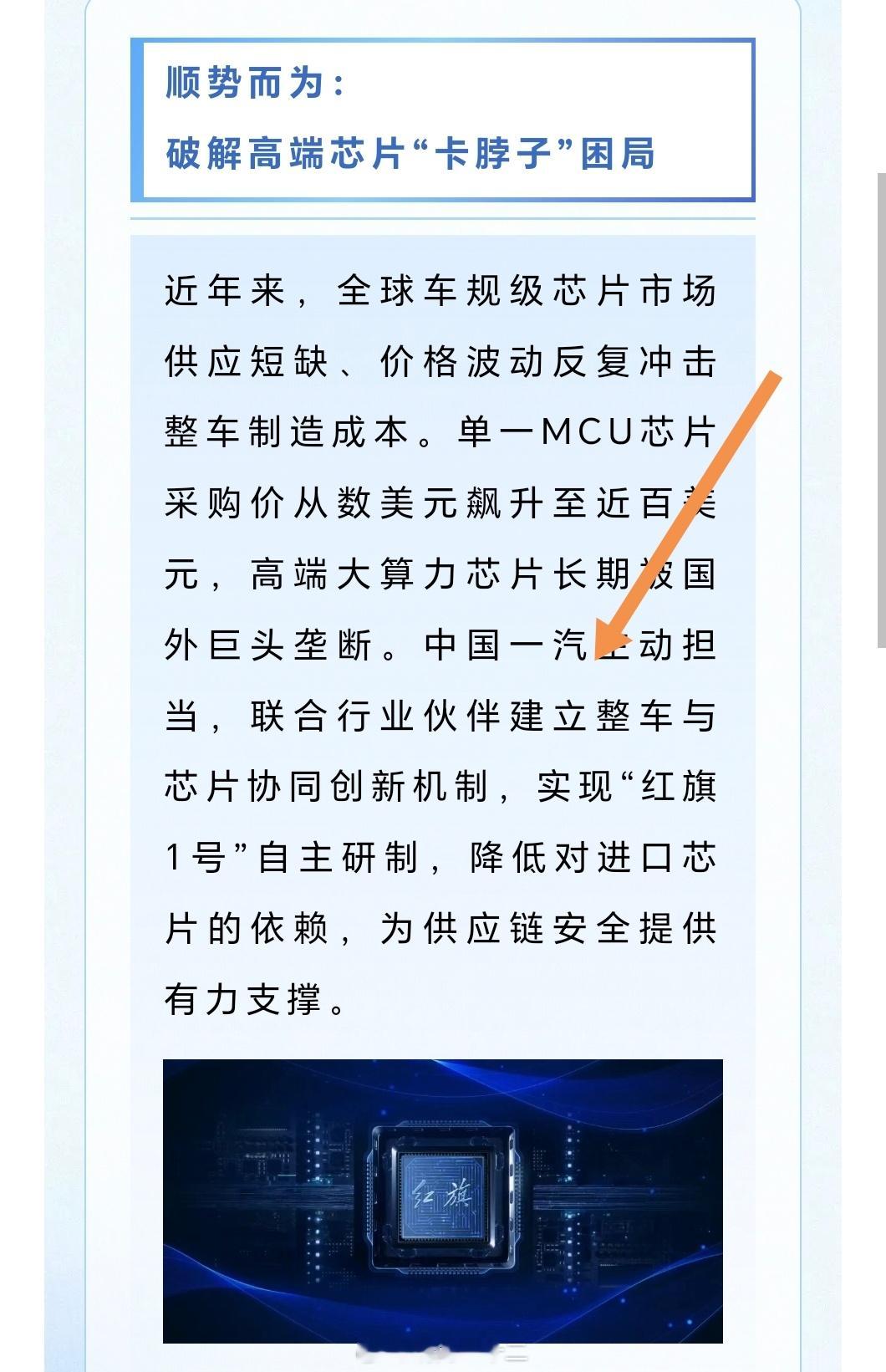 1、红旗前几天发了一个自研多任务芯片,红旗1号,可以简称为红旗H1。2、红旗1号