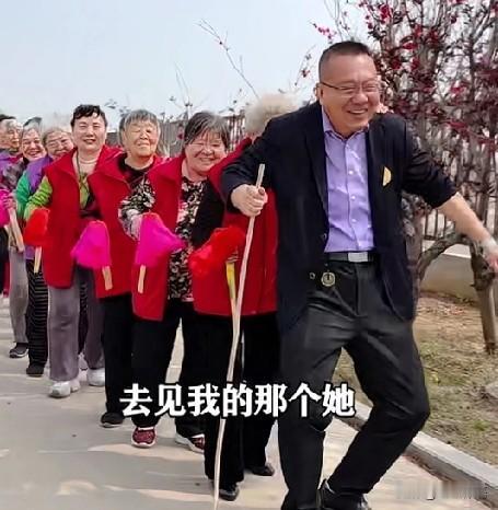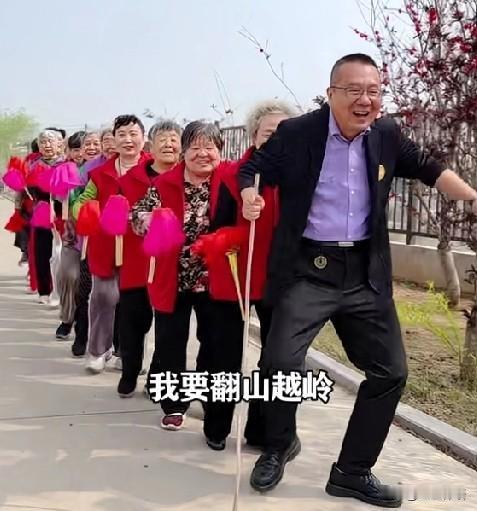 今天刷到的视频,是他拄着拐杖,模仿颤颤巍巍、步履蹒跚的老人,带着一群花甲老奶奶们派段子做游戏的日常。