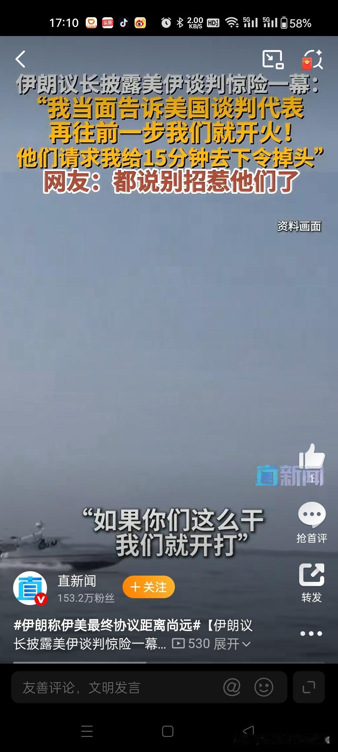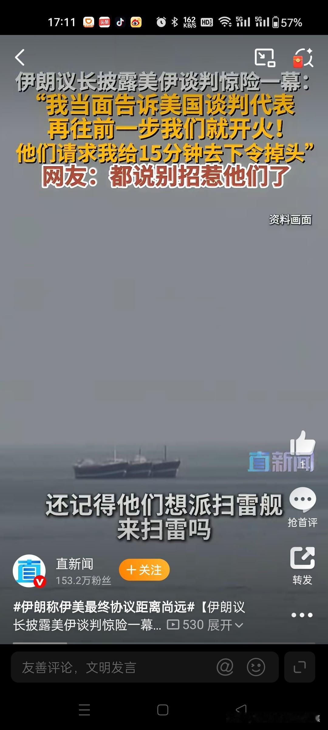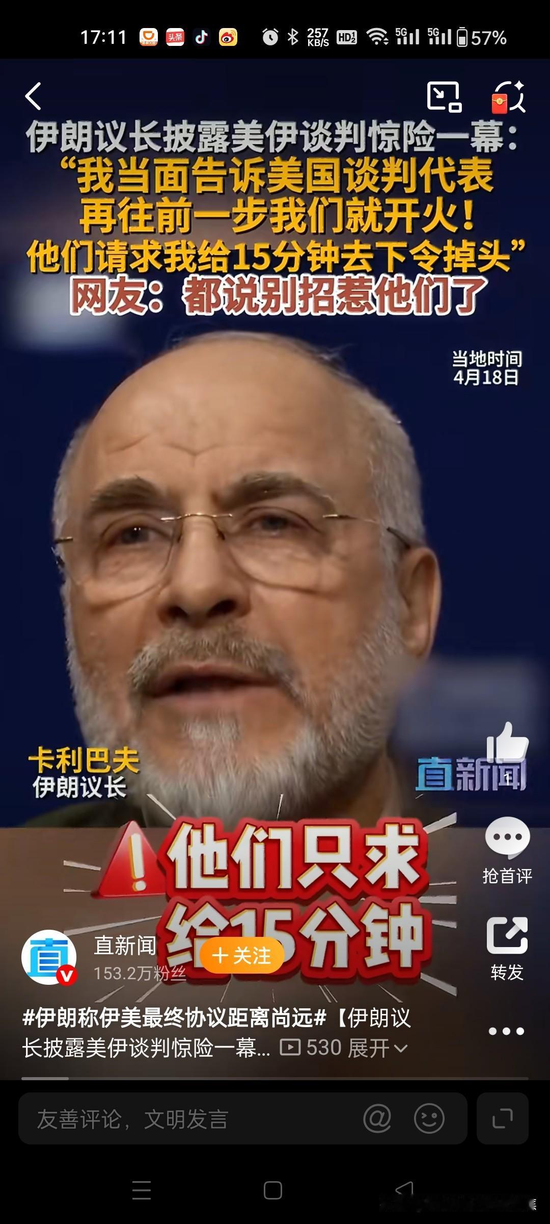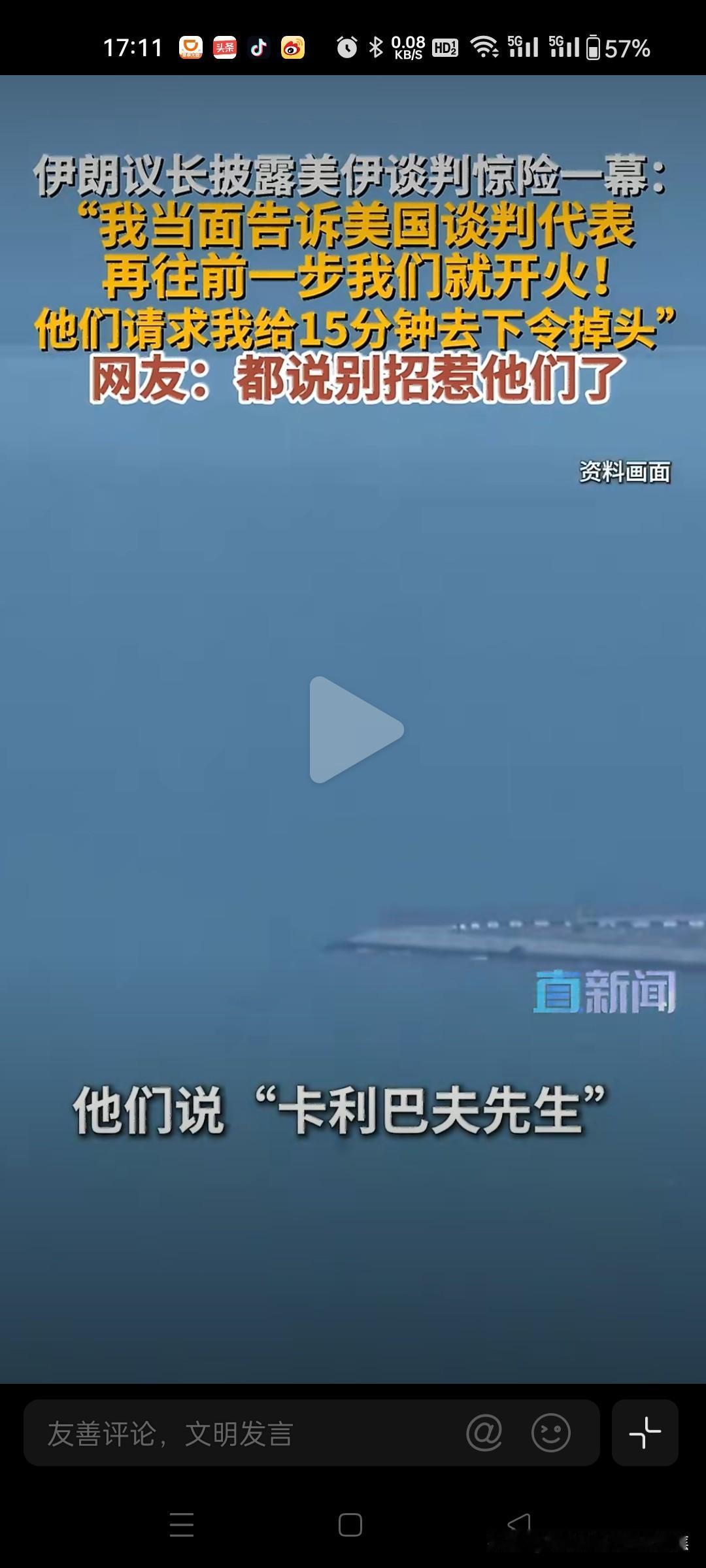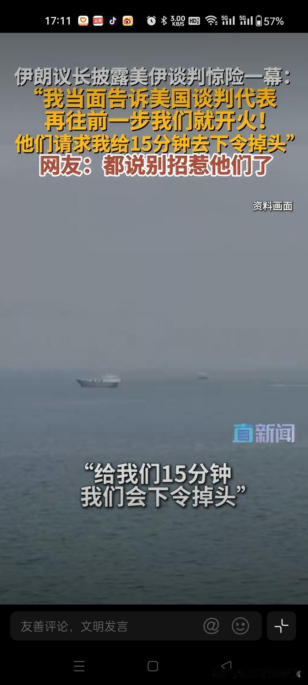 伊朗议长吓退美军军舰,真硬核!