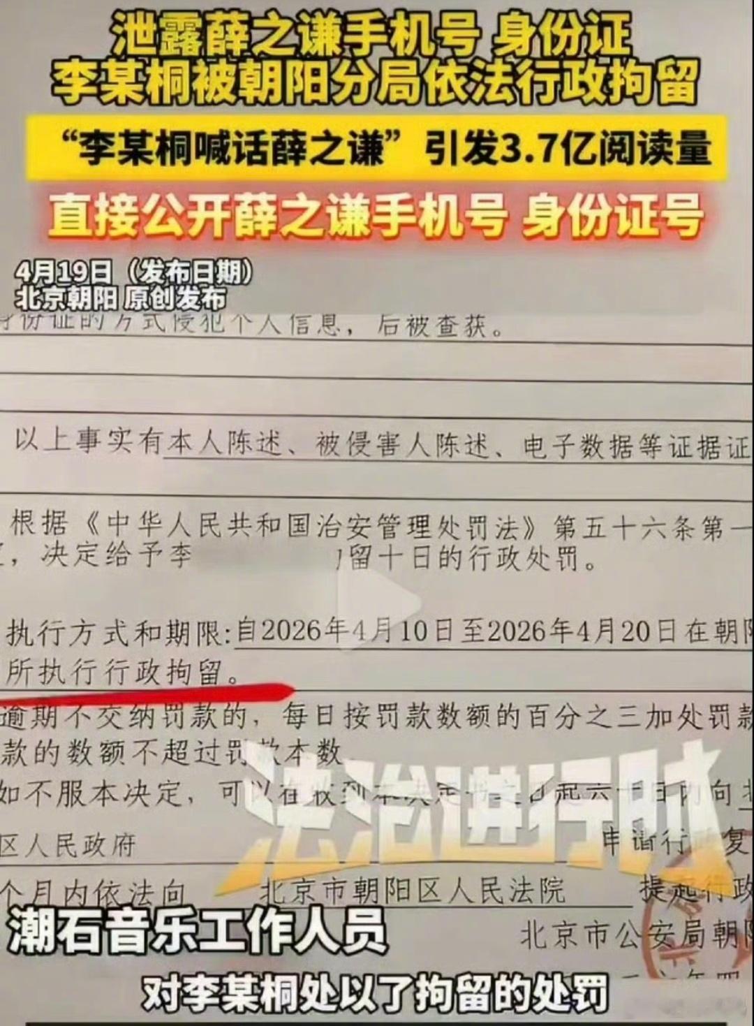 李雨桐因泄露薛之谦隐私被刑拘10日,拘留日期从4月10日至4月20日。本来是