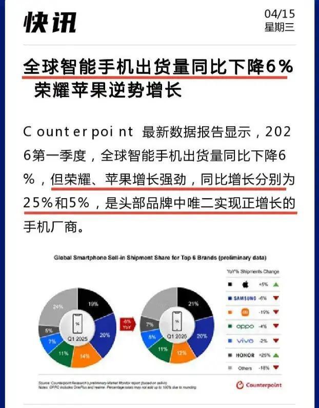 荣耀不光国内稳涨,海外卖得更猛,全球销量同比大涨25%。