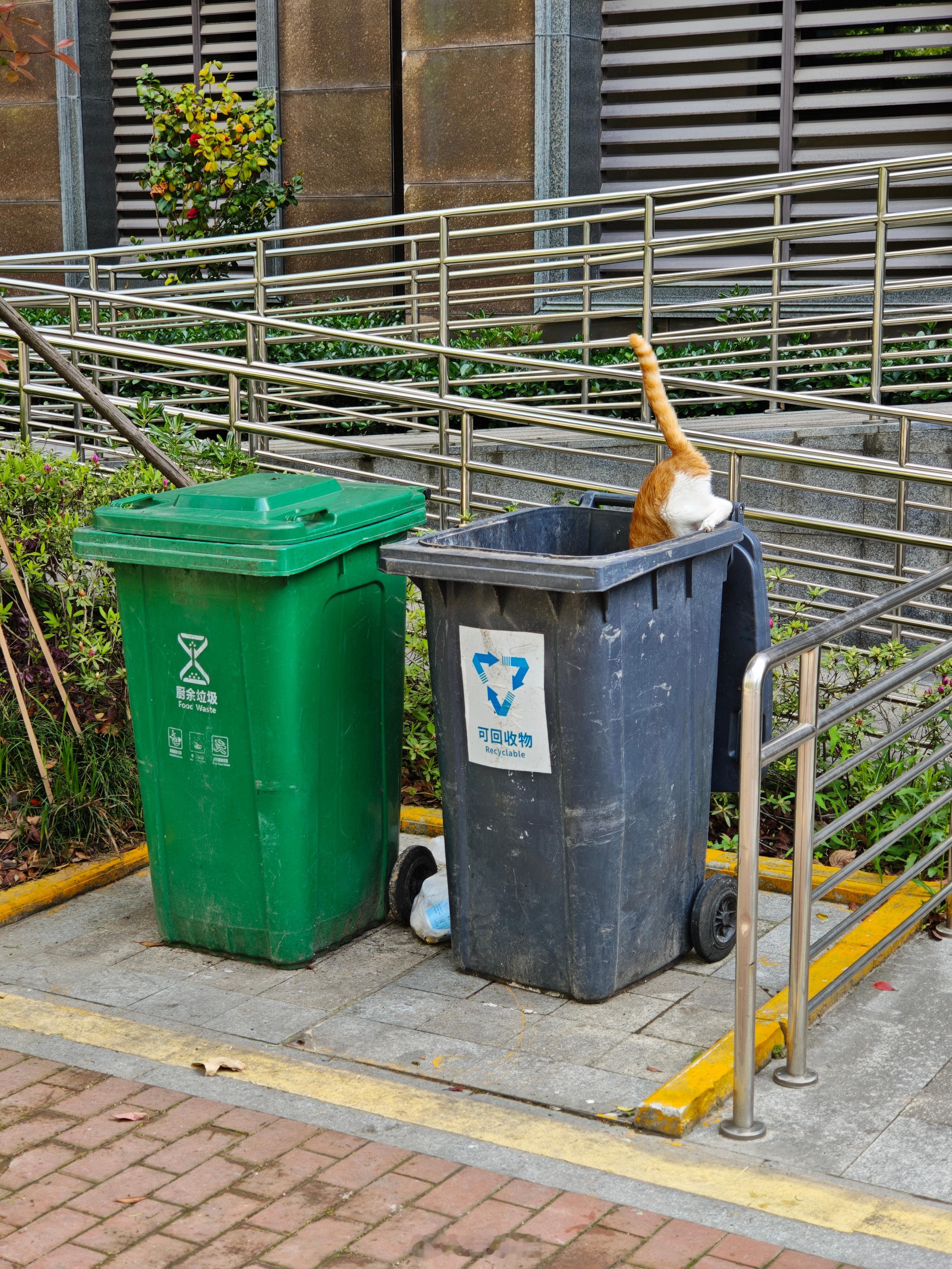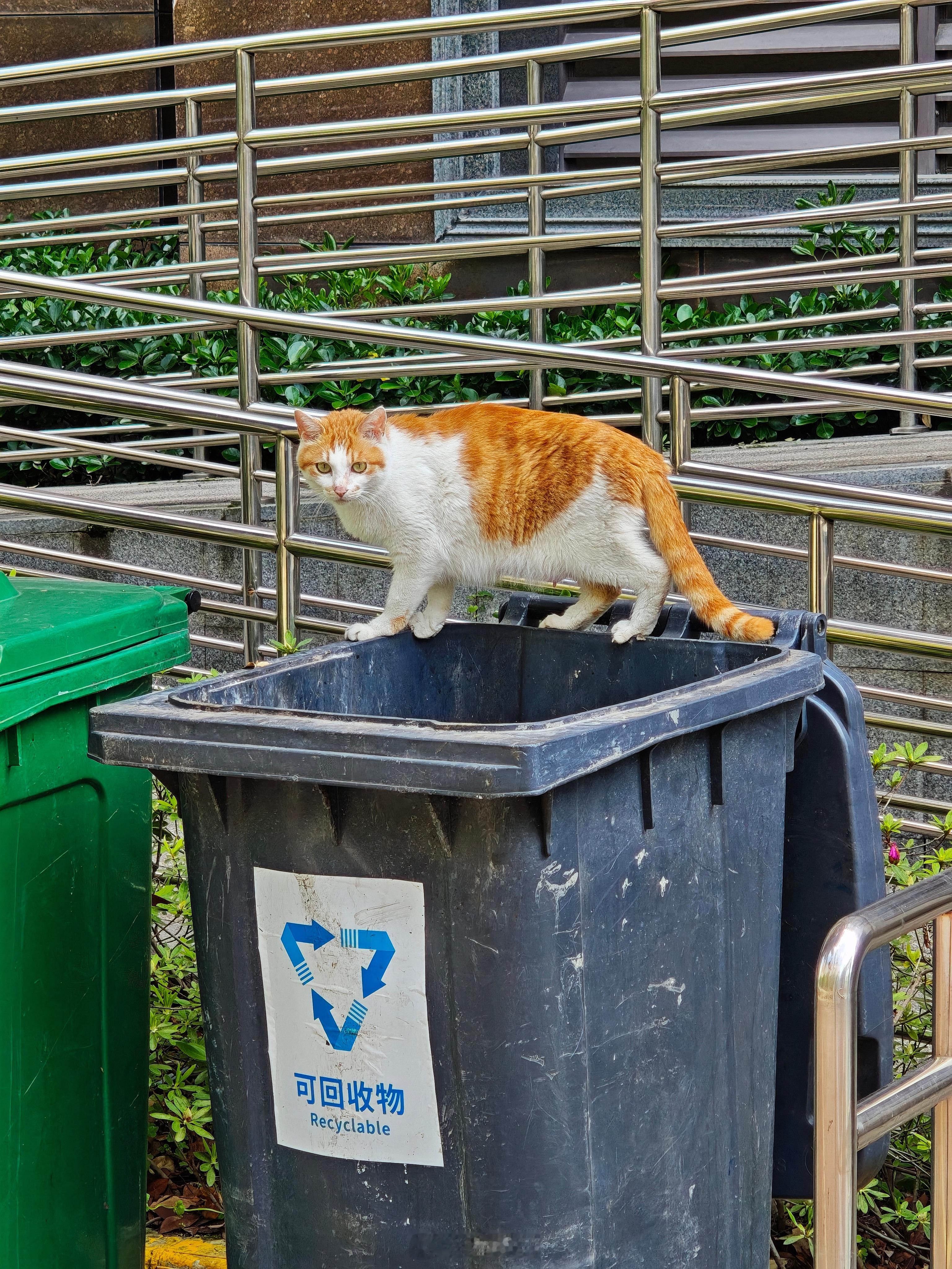 我们这儿的猫就很瘦。明明有人喂,还要翻垃圾桶