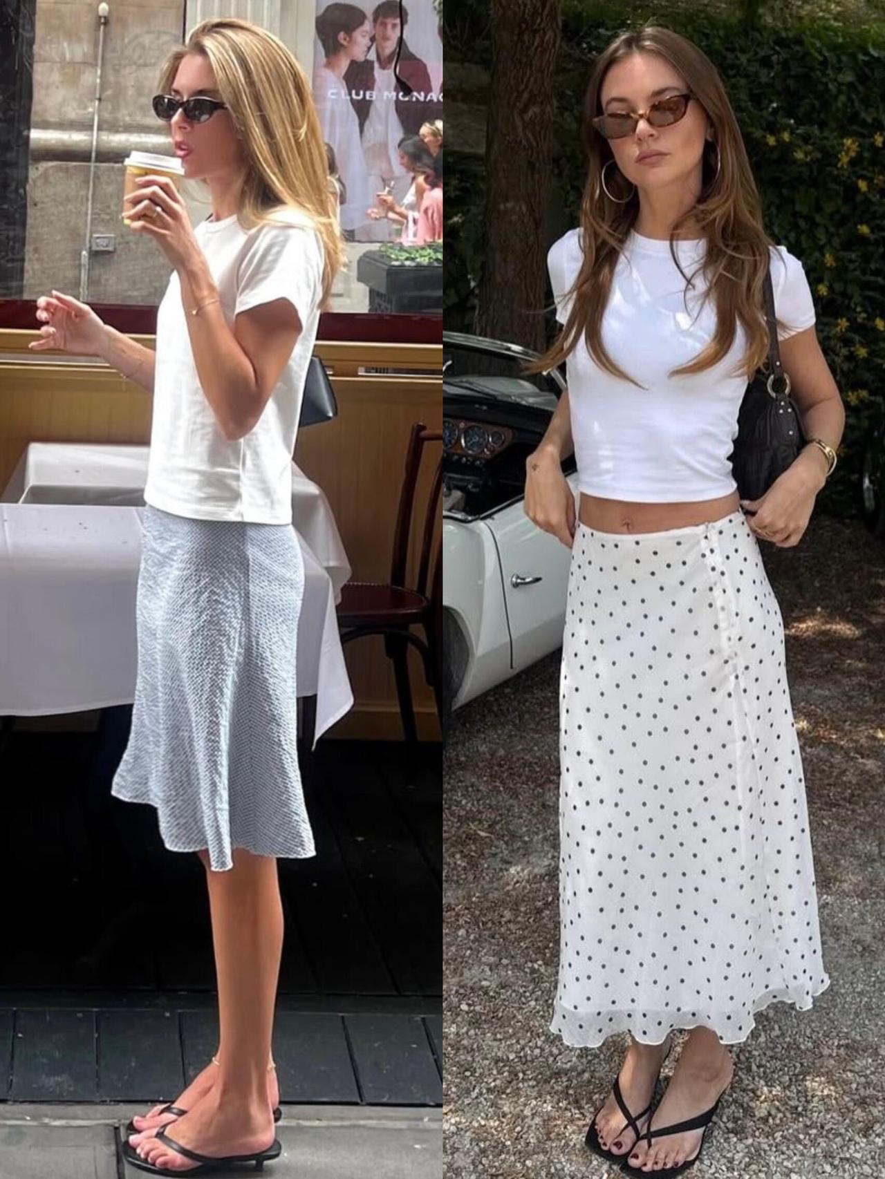 简约白T搭配不同款式的半裙,轻松拿捏多种风格。波点、条纹、蕾丝、缎面等元素,让基础款也充满设计感,或俏皮或优雅,适配度超高。搭配玛丽珍鞋、夹脚拖或单肩包,细节里透着松弛感,整套不费力就穿出韩系小姐姐的温柔气质,日常出街超耐看。