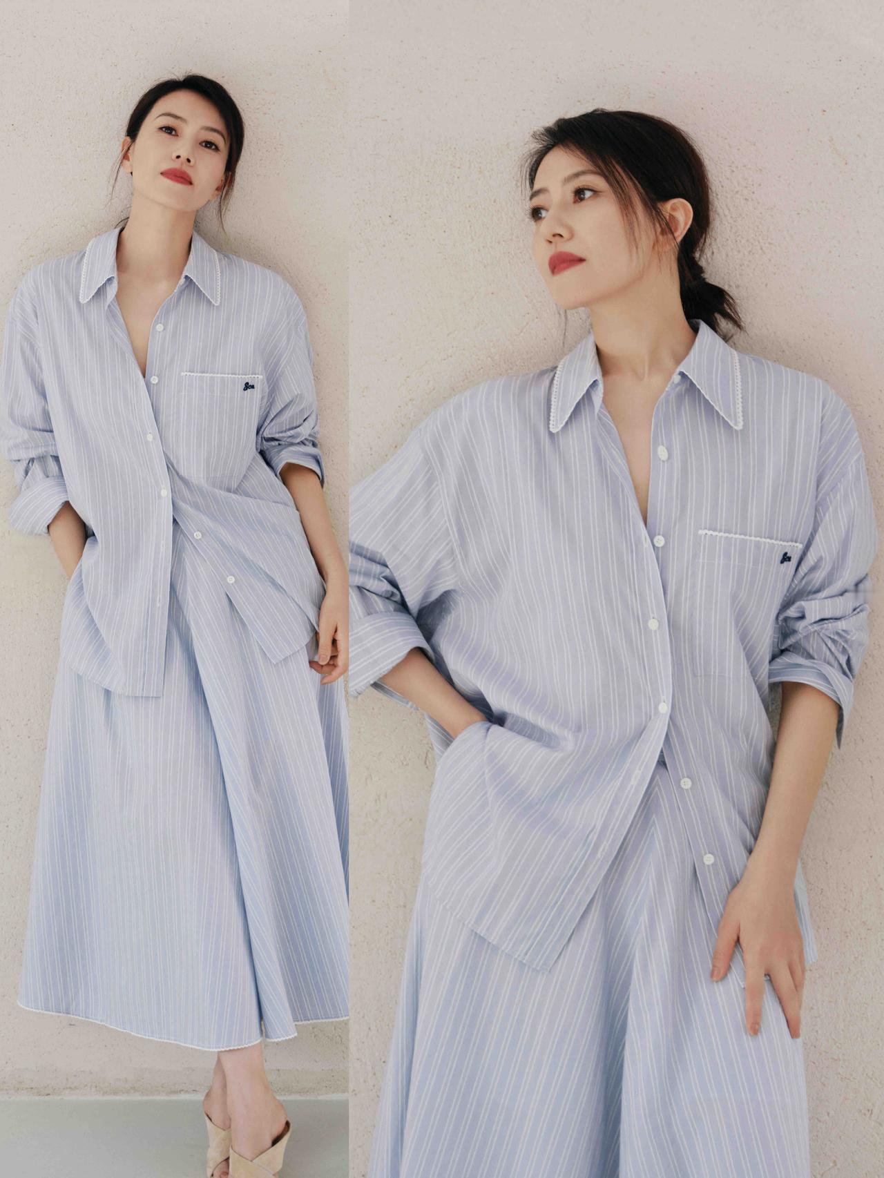 高圆圆穿搭超优雅! 这几组造型把松弛感与知性美拿捏得恰到好处。棉麻衬衫、条纹套装