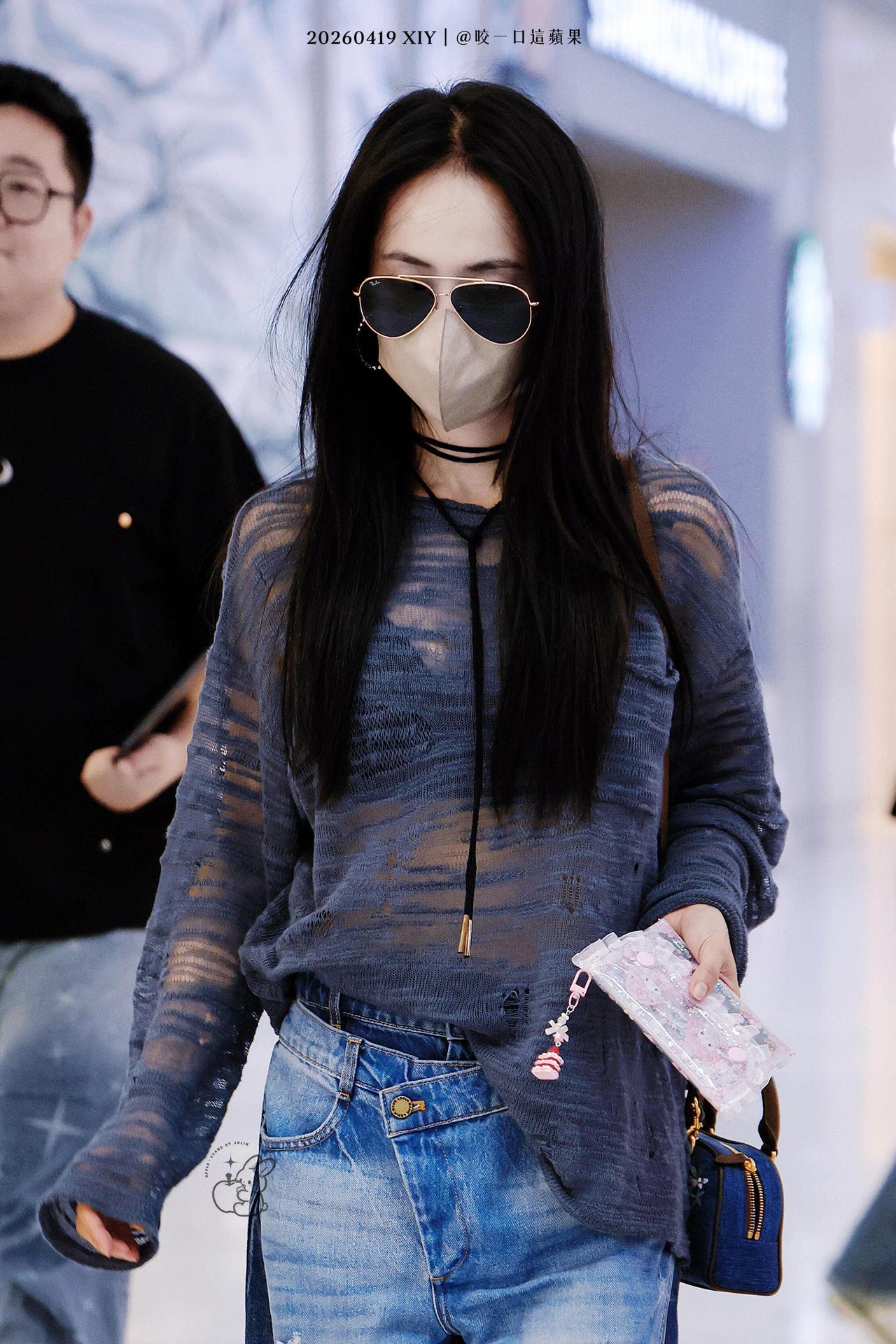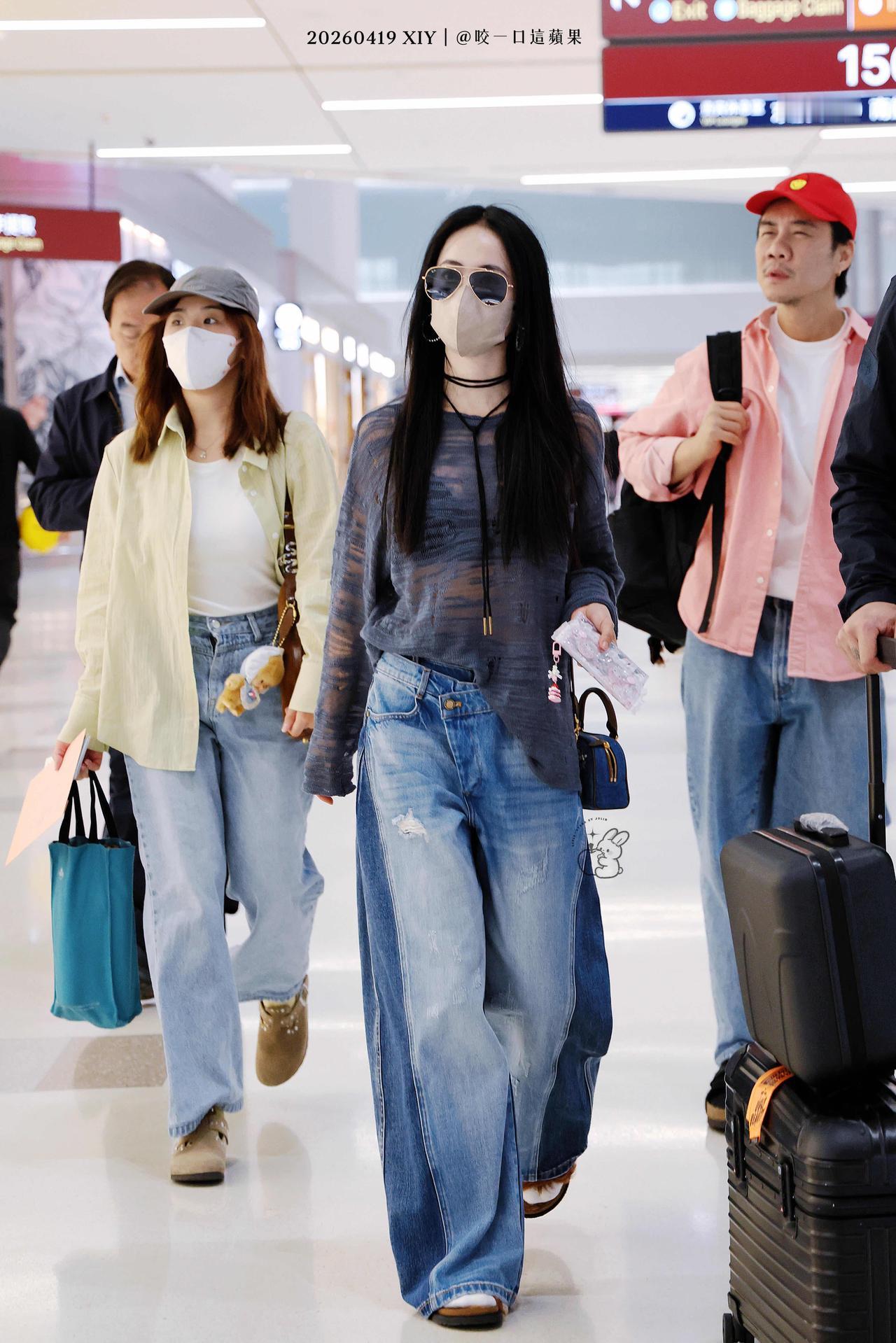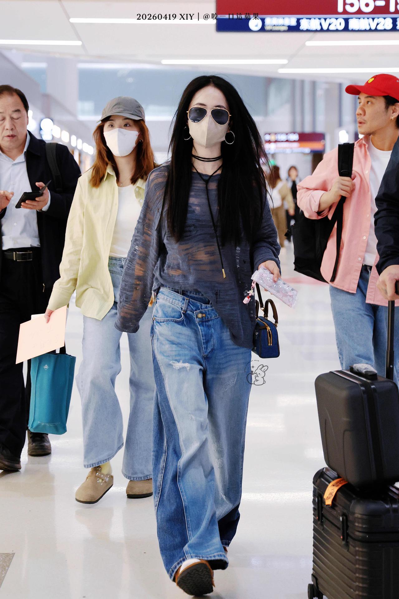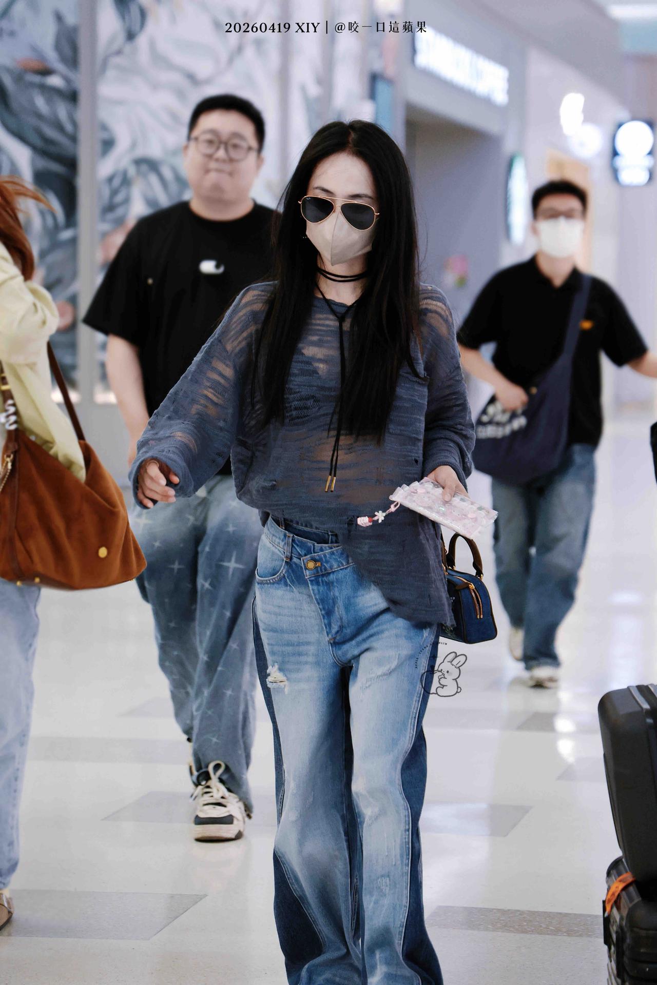 蔡依林私服超适合小个子,显高洋气! 灰蓝色破洞针织衫搭配高腰阔腿牛仔裤,巧妙拉高