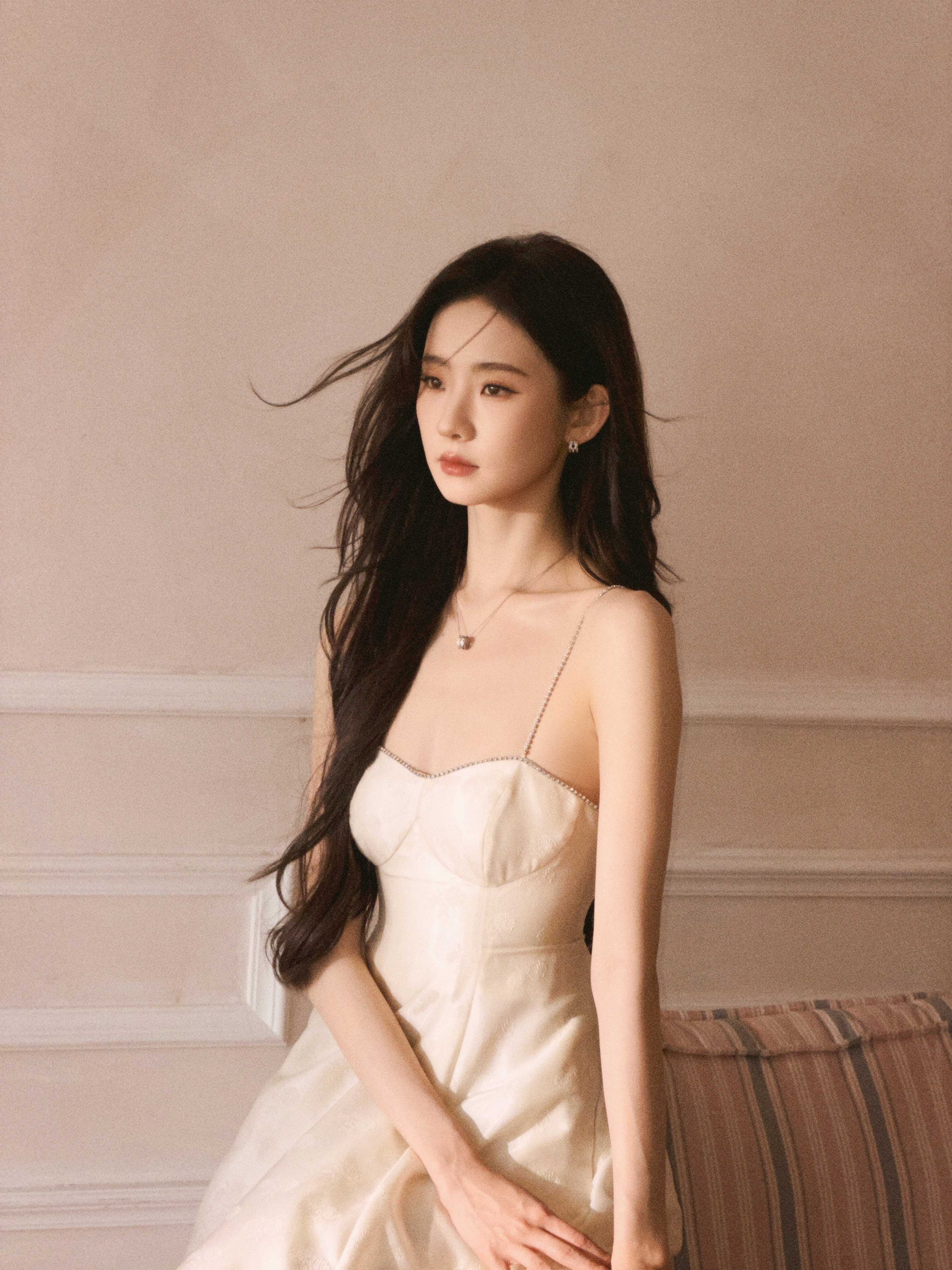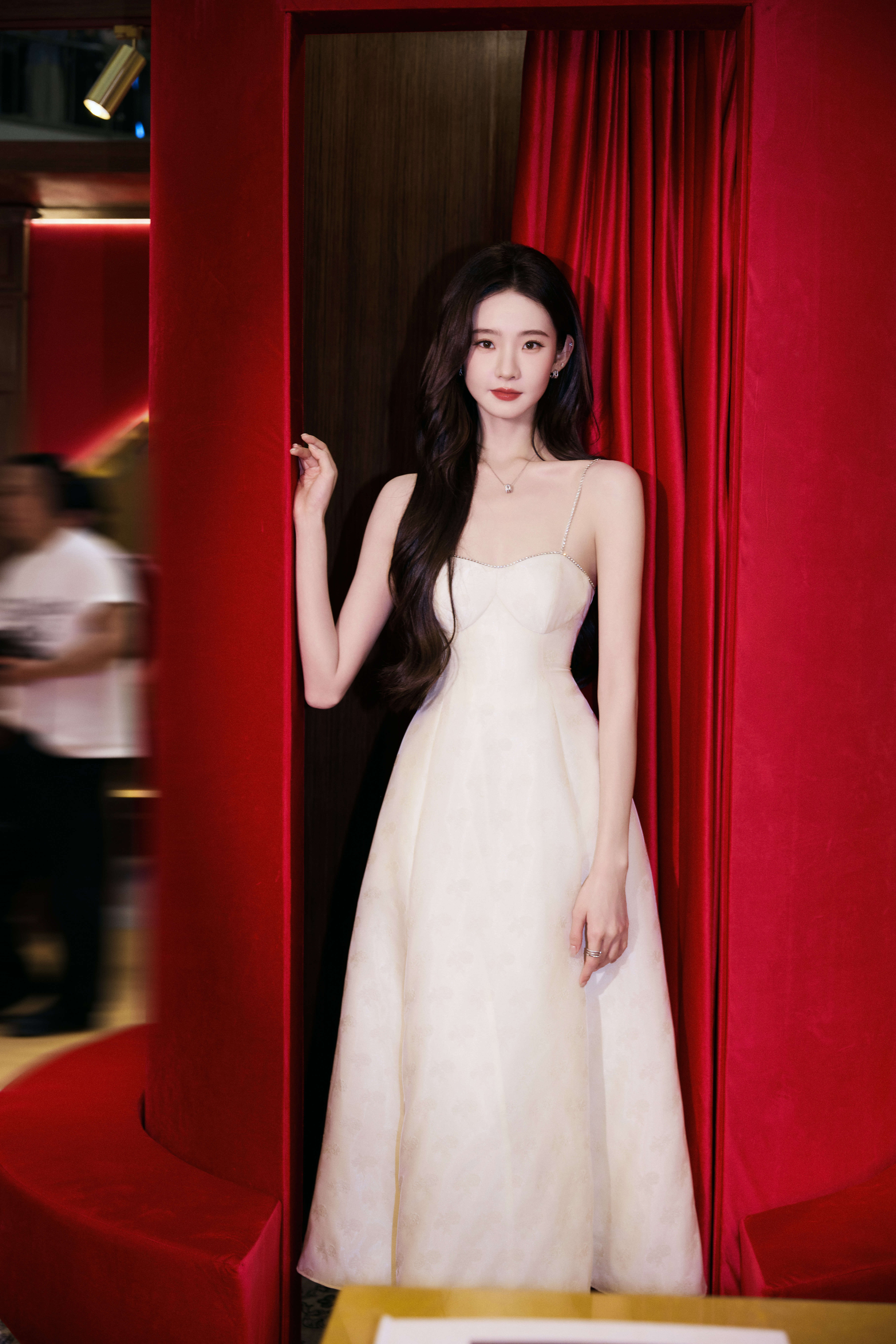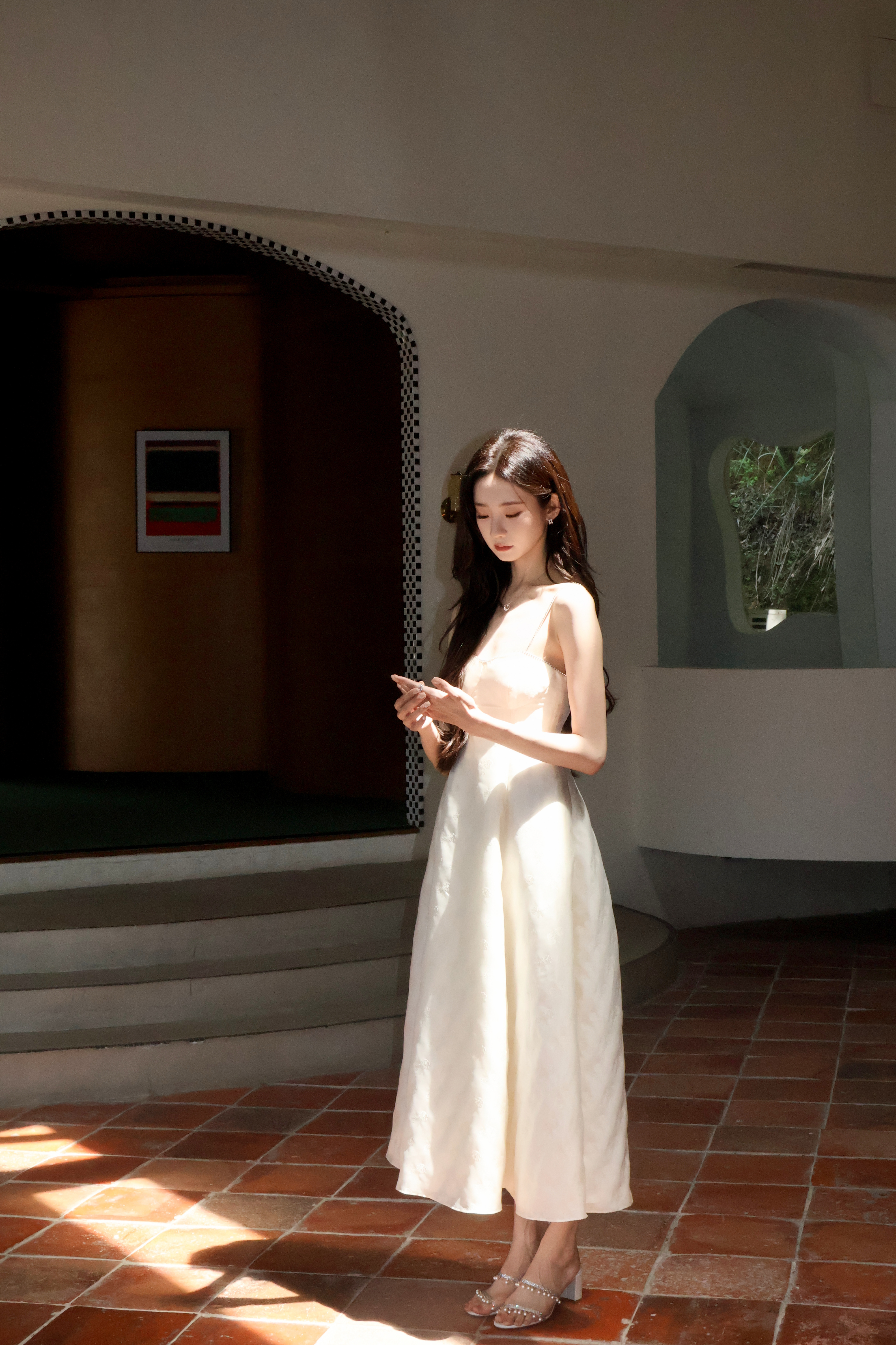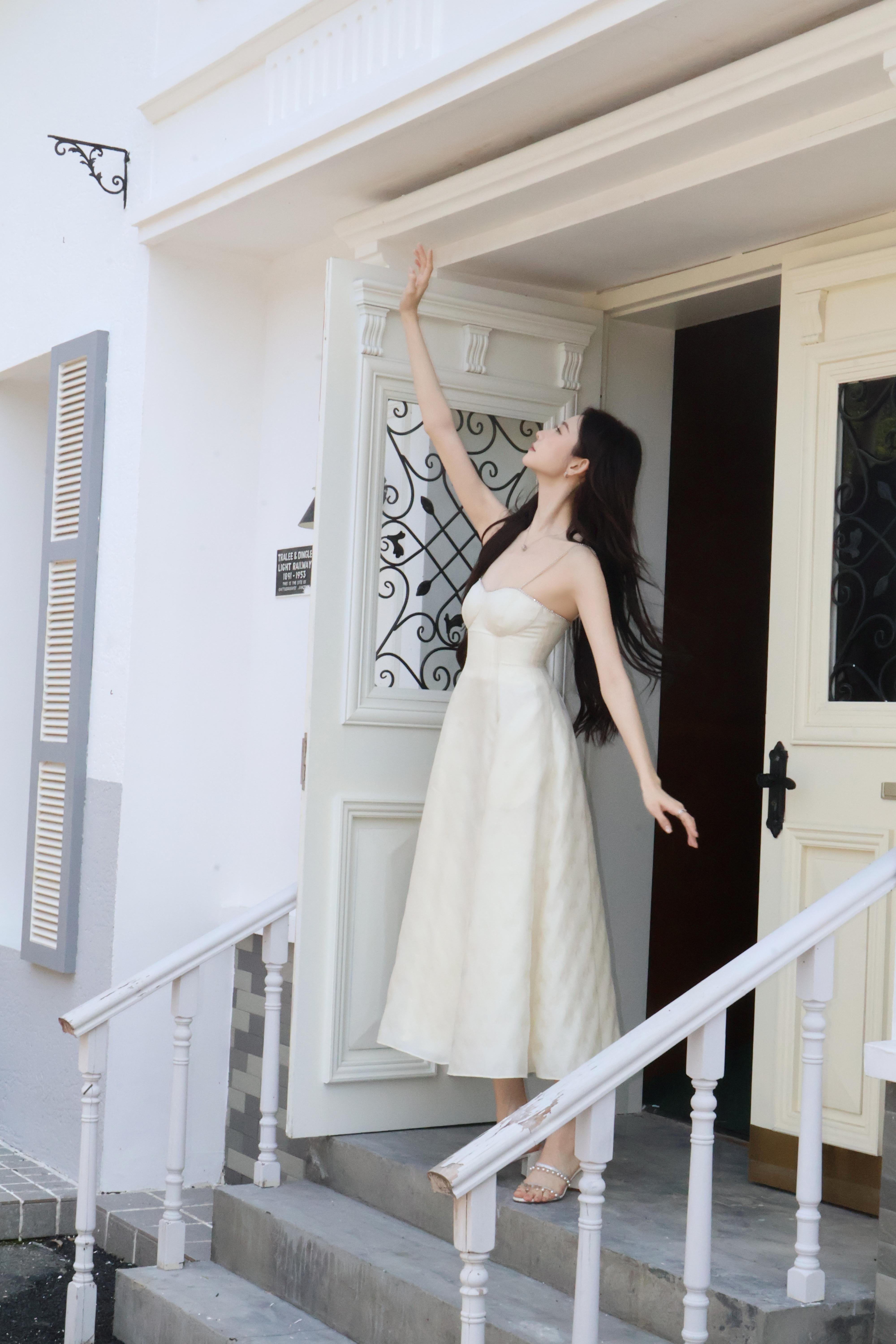 张艺凡 奶白吊带裙勾勒出柔媚曲线,水钻与高跟鞋的细节,把千金氛围感拉满了。徐若