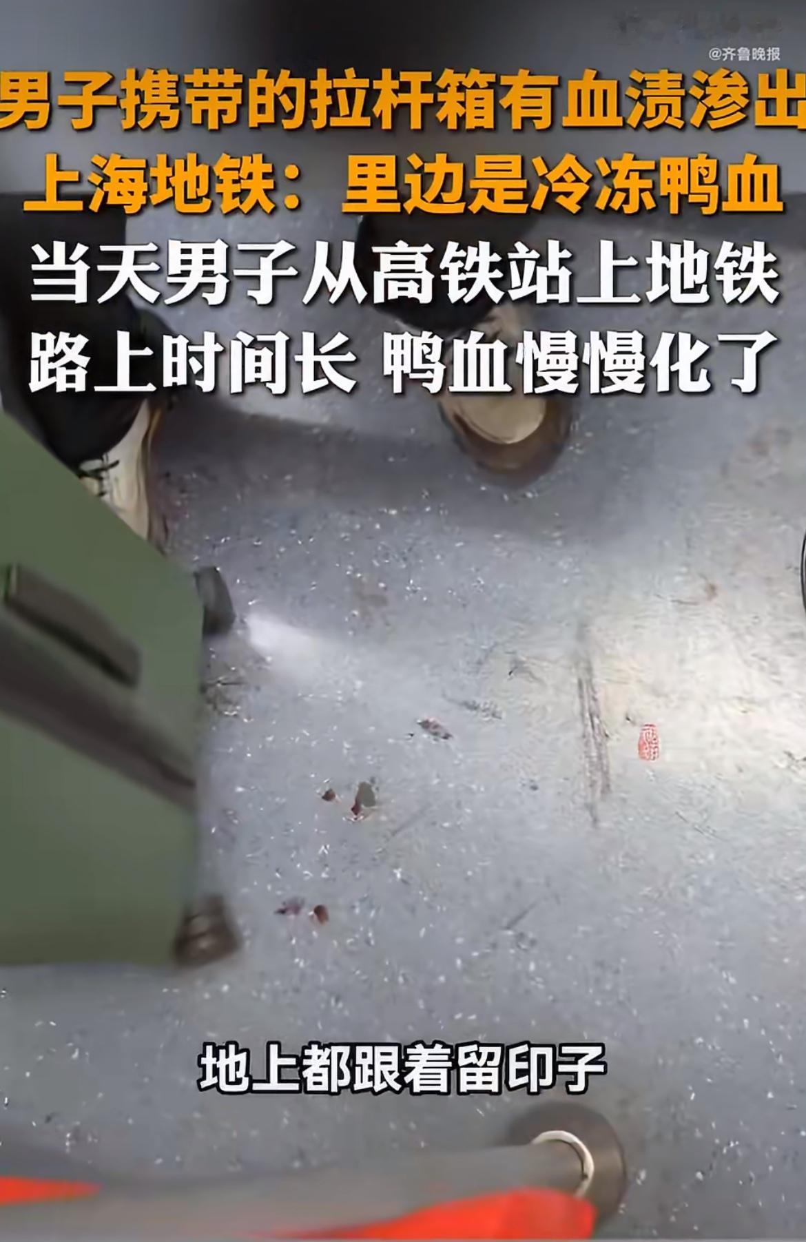 天呐!上海地铁里拖个拉杆箱,居然一路往外渗红血渍,当事人还攥着纸不停擦,当场给周围乘客吓得够呛,有人直接报警了!结果官方调查出来,箱子里装的居然是这?