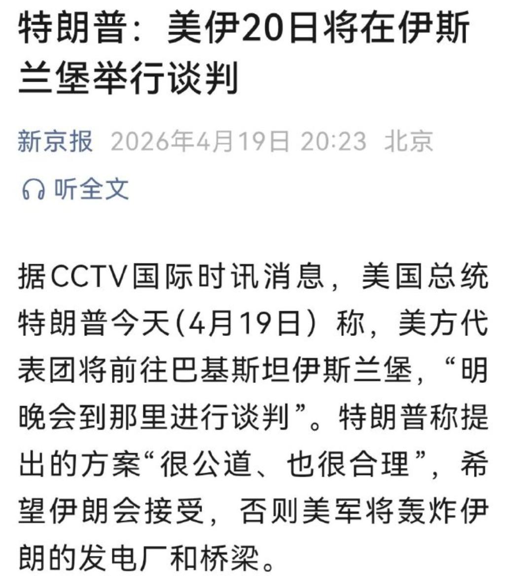 川普很着急,20号美伊再次进行谈判。