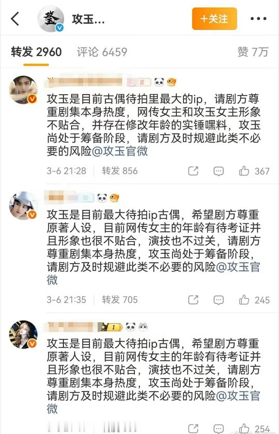 之前粉丝说《攻玉》是大ip,自己吞了也不能给别人现在粉丝可有悔