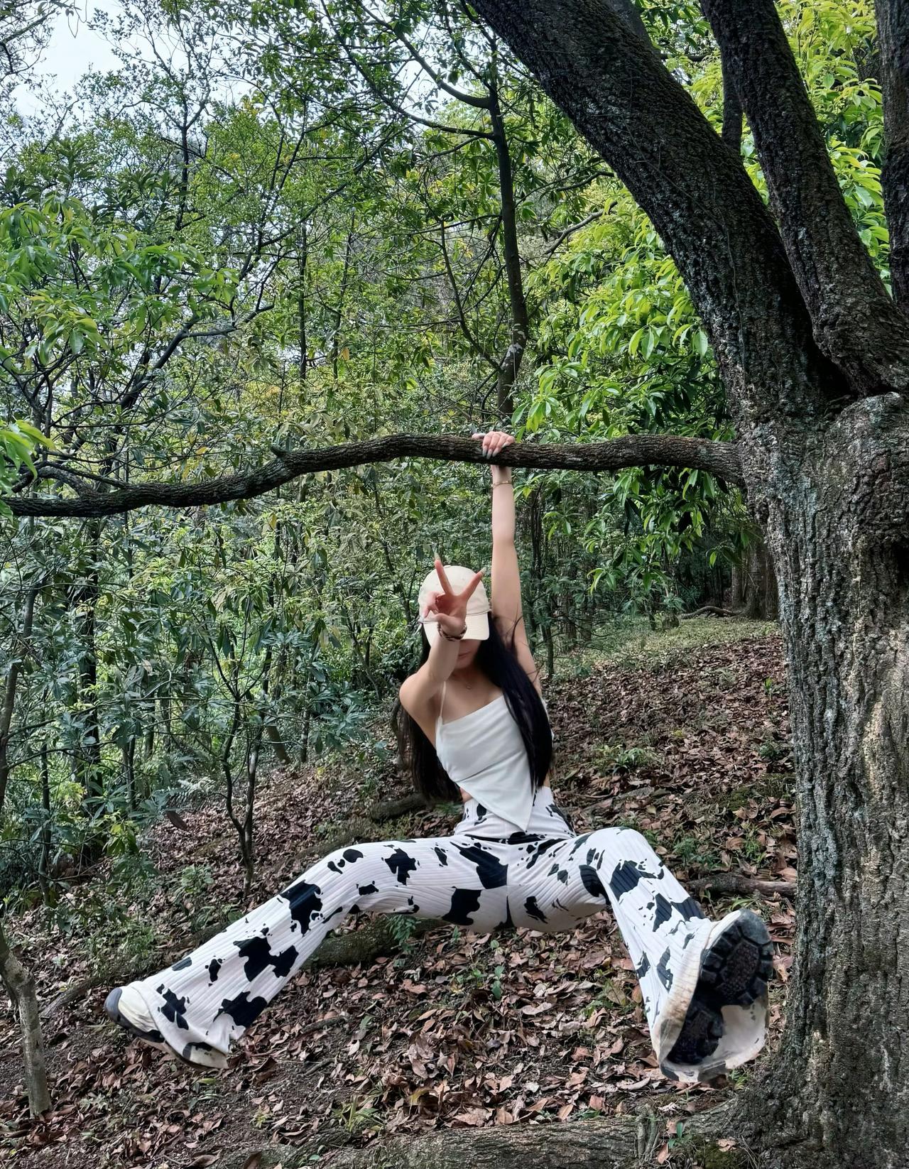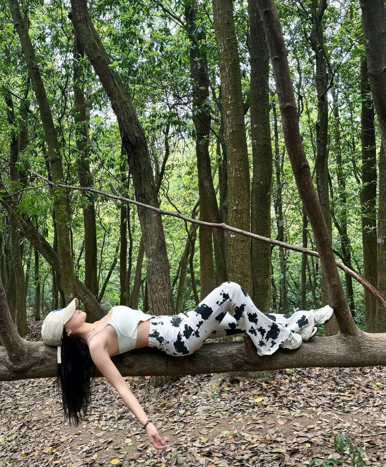 躺在树干上,让阳光落在脸上,什么都不用想,只需要感受此刻的自由与安宁。