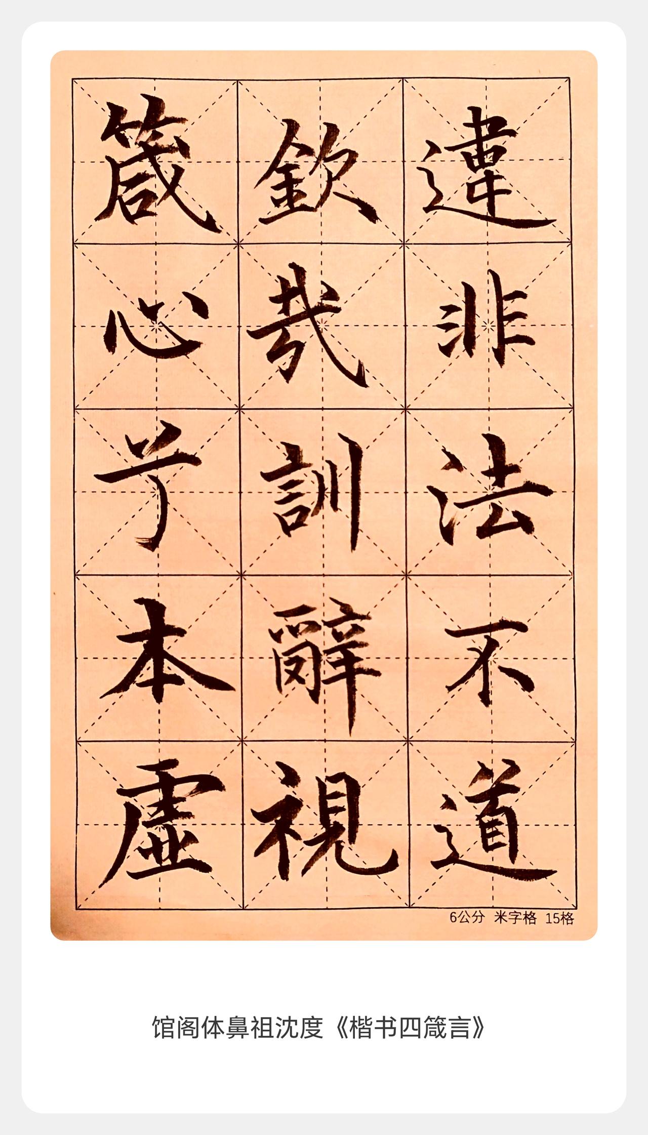 沈度为明代“台阁体”开山人物,楷书风格平正婉丽、温润雍容。临摹者若能抓住其笔法工致规整、结体匀净端庄的特点,呈现出清秀醇和的气息,即体现出了沈度楷书的气质,不过临作可适当增加字间粗细变化,避免过于板正。