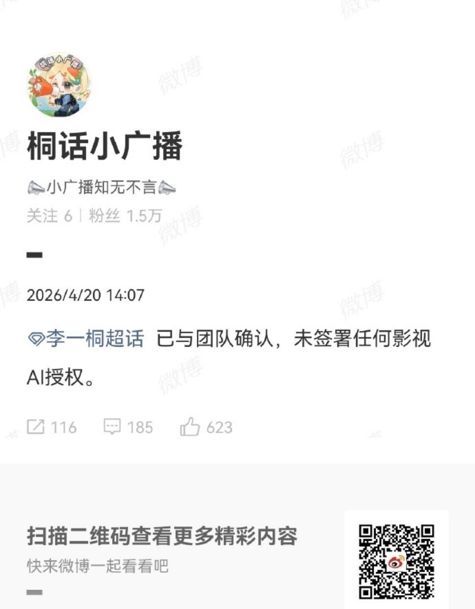 多位艺人辟谣签约爱奇艺AI授权针对网传艺人签约爱奇艺AI授权相关消息,目前已有多
