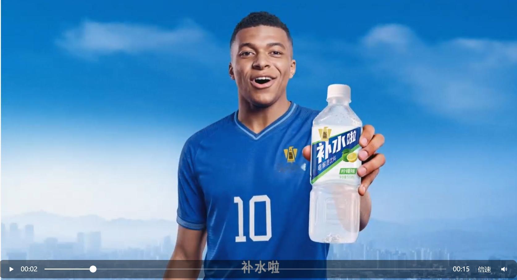 姆巴佩喊你补水啦 一场90分钟的比赛,奔跑超过10公里,反复折返冲刺直到球衣湿透