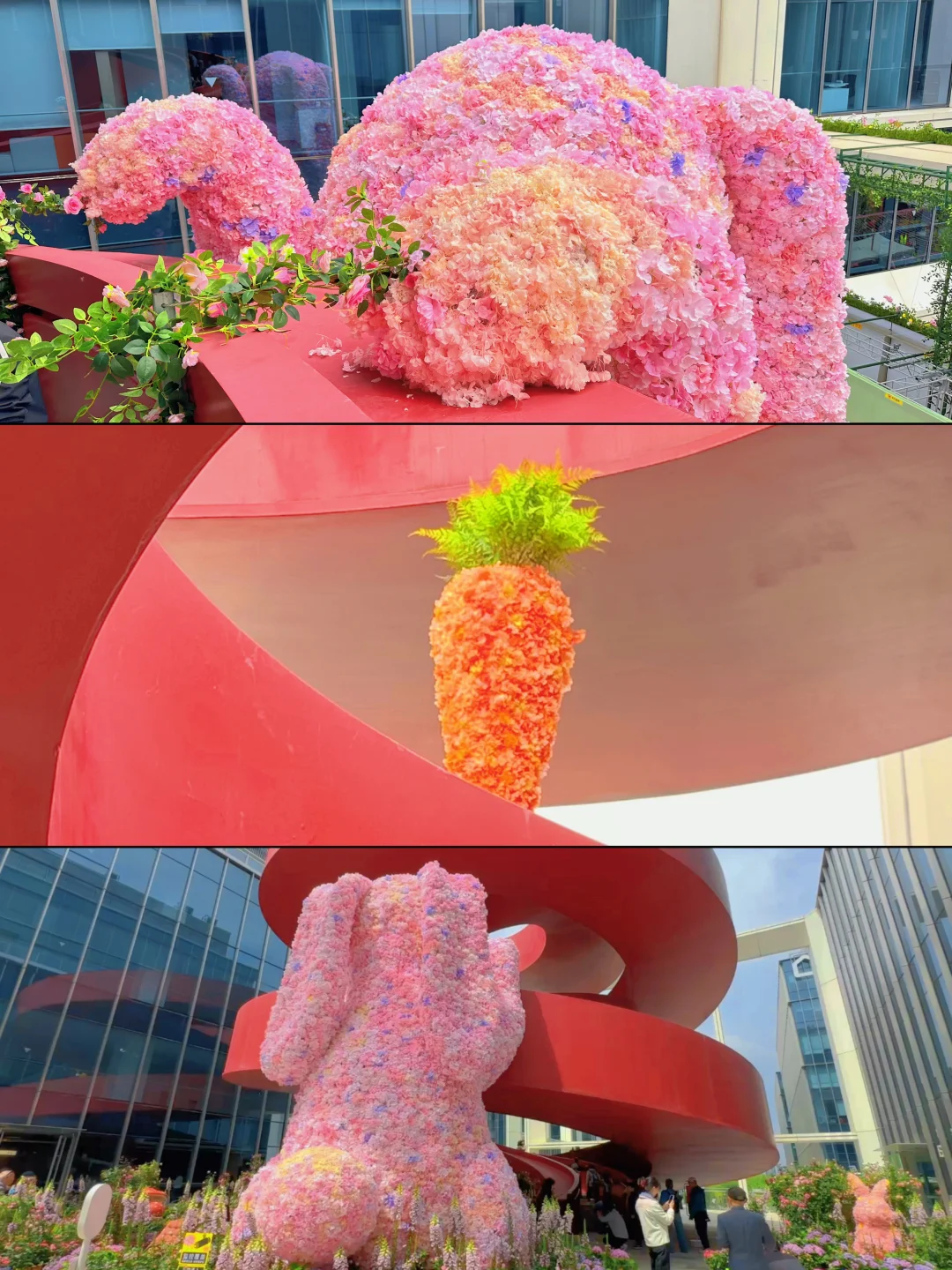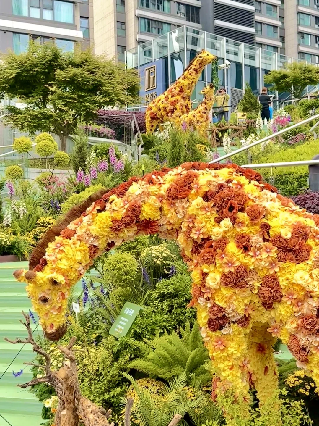 街区一步一景都是花朵簇拥而成的各种可爱小动物,太!用!心!了!
