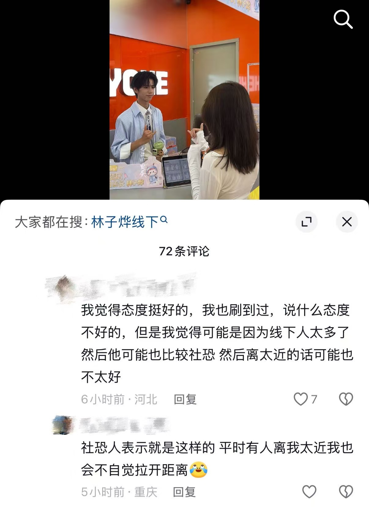 林子烨被吐槽态度差看了一圈感觉真的是误会了。可能是刚出场时有点紧张拘谨,才让人误会了吧。其实弟弟现场状态一直很在线,不少到场的粉丝都反馈,合照时全程都在笑,待人也很有礼貌,完全不是网上说的那样。大家别被片段式的截图带节奏啦,多看看完整现场再评价吧。