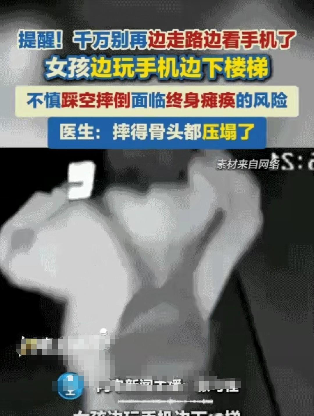 身体往下掉,速度叠加,撞击力翻倍,骨骼承受的极限一下子就被突破了。冰冷的数据直击现实:因沉迷手机分心造成的跌倒、车祸,在意外伤害中占比高达 32.7%。楼梯跌落的致残率高达61%。临床上此类意外病例屡见不鲜:一时踩空失足,轻则骨折伤身,重则颅脑受损,乃至终身瘫痪。