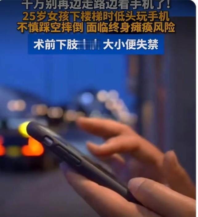 参考:25岁女子下楼玩手机摔成大小便失禁:腰椎出现爆裂性骨折——2026-04-1919:25·新晚报