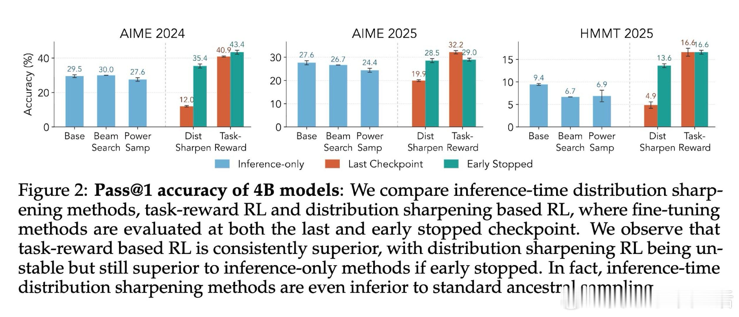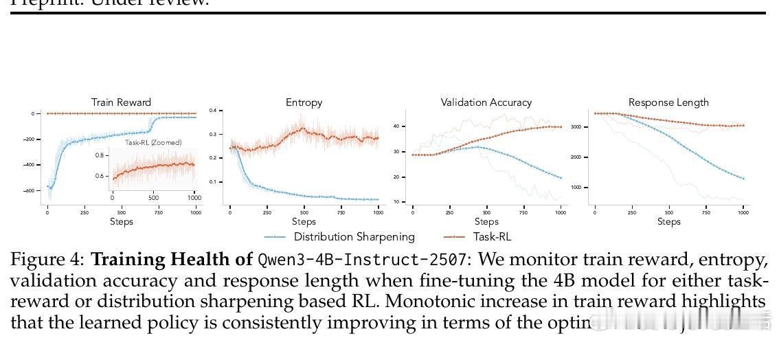 本文的核心洞见是:把分布锐化与任务奖励视为同一RL框架下可独立操控的两个旋钮。由此,通过固定训练范式、仅切换奖励信号与KL目标,研究者得以将两种机制直接解耦——实验揭示分布锐化的崩溃根源恰在于变长序列的EOS吸收机制,而非优化过程本身的缺陷。
