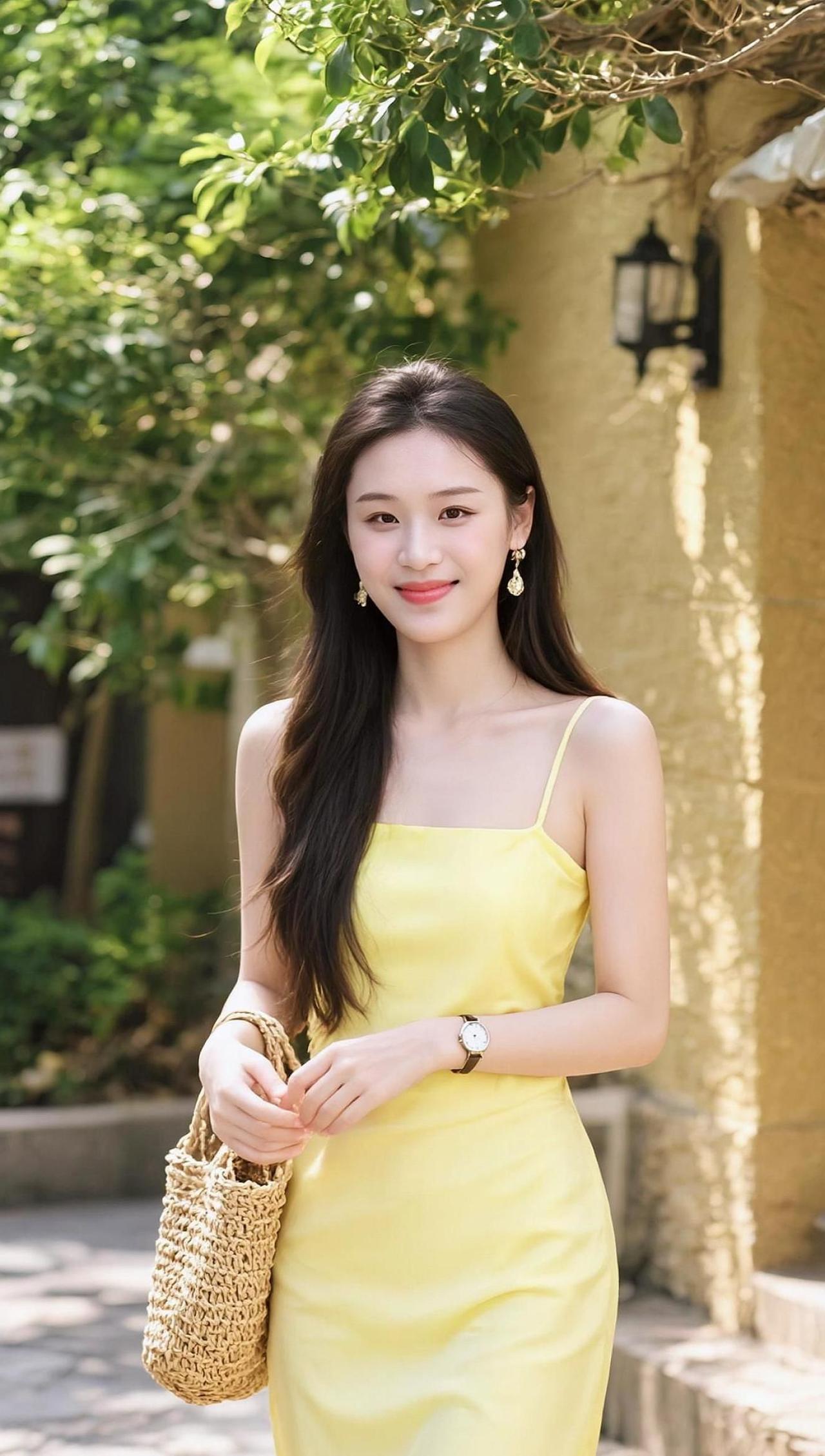 阳光下的柠檬黄,真是个让人眼前一亮的颜色。这背景的建筑,看起来像是个有故事的老地方,是不是藏着什么秘密呢?小姐姐的笑容,简直是治愈系的代表,让人忍不住想跟着一起笑。这照片,拍得真是时候,光线、角度,一切都刚刚好。就像是生活中的小确幸,不经意间就出现了。