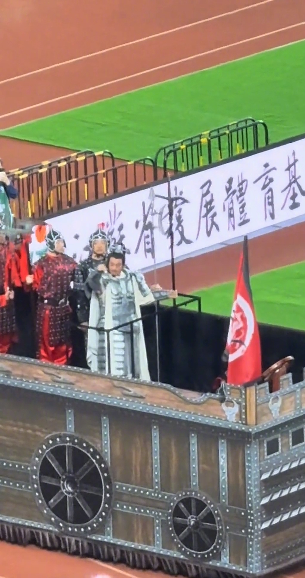 何润东现身宿迁奥体,没有让观众们失望。何润东并未骑着马登场,而是在移动车上传口号