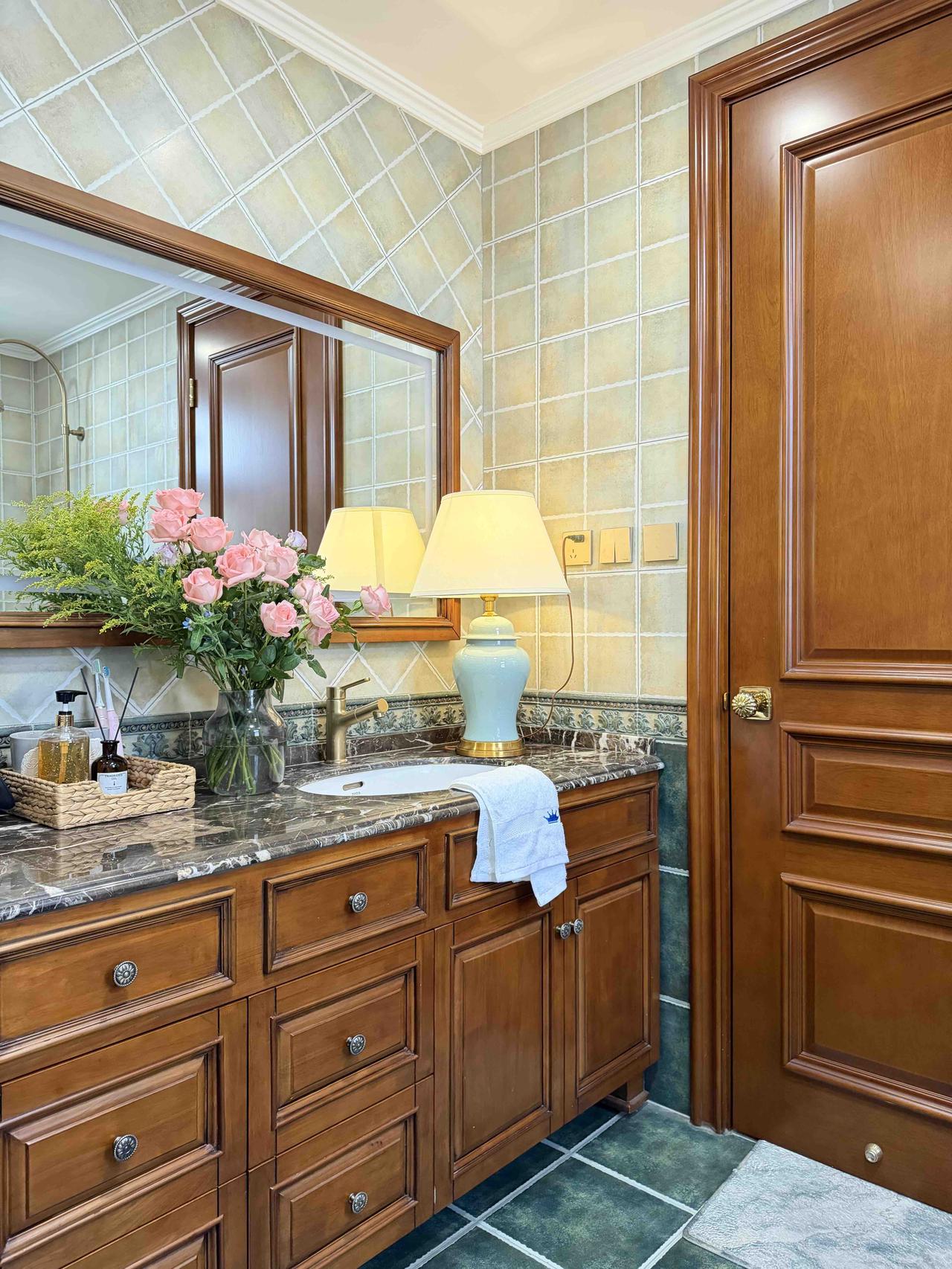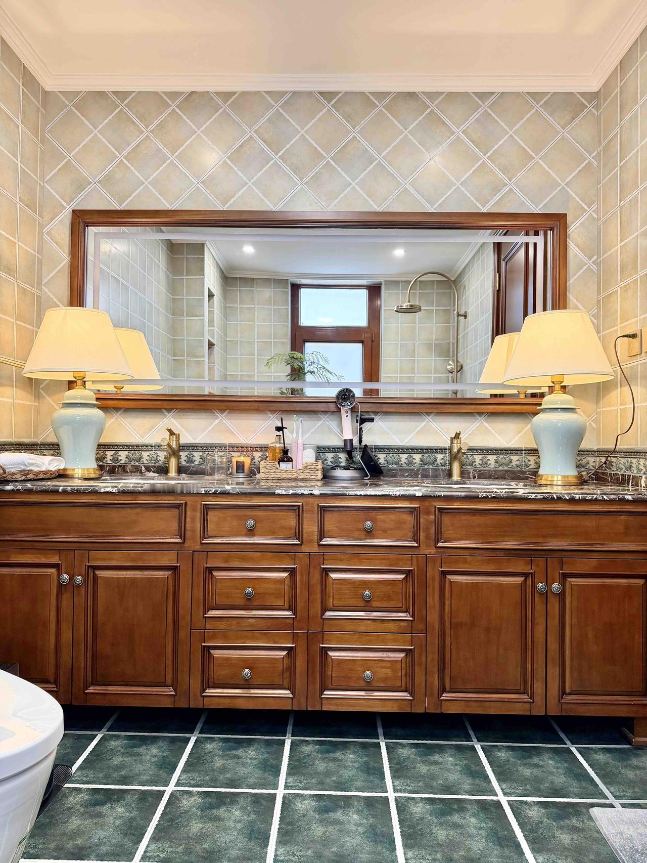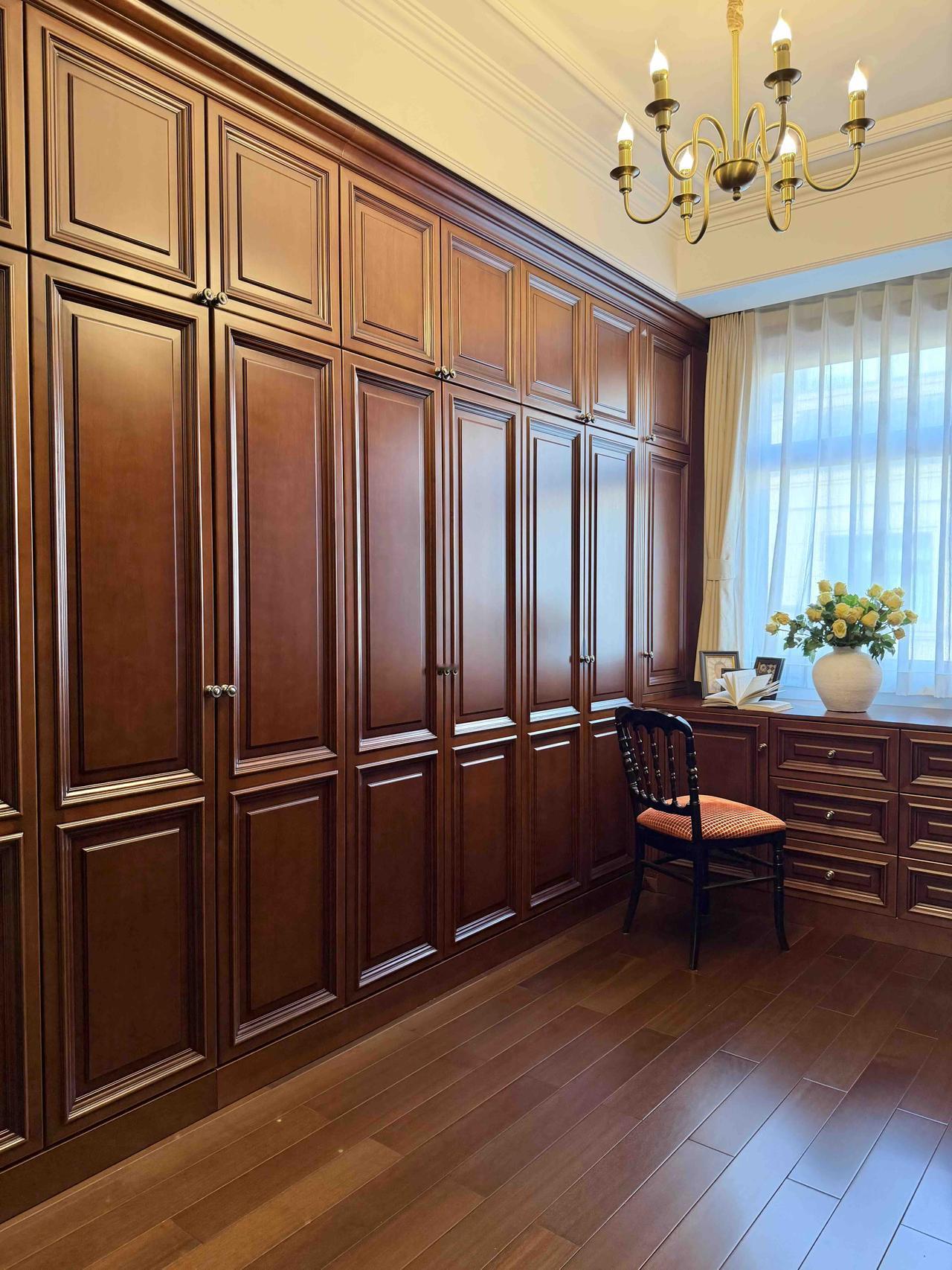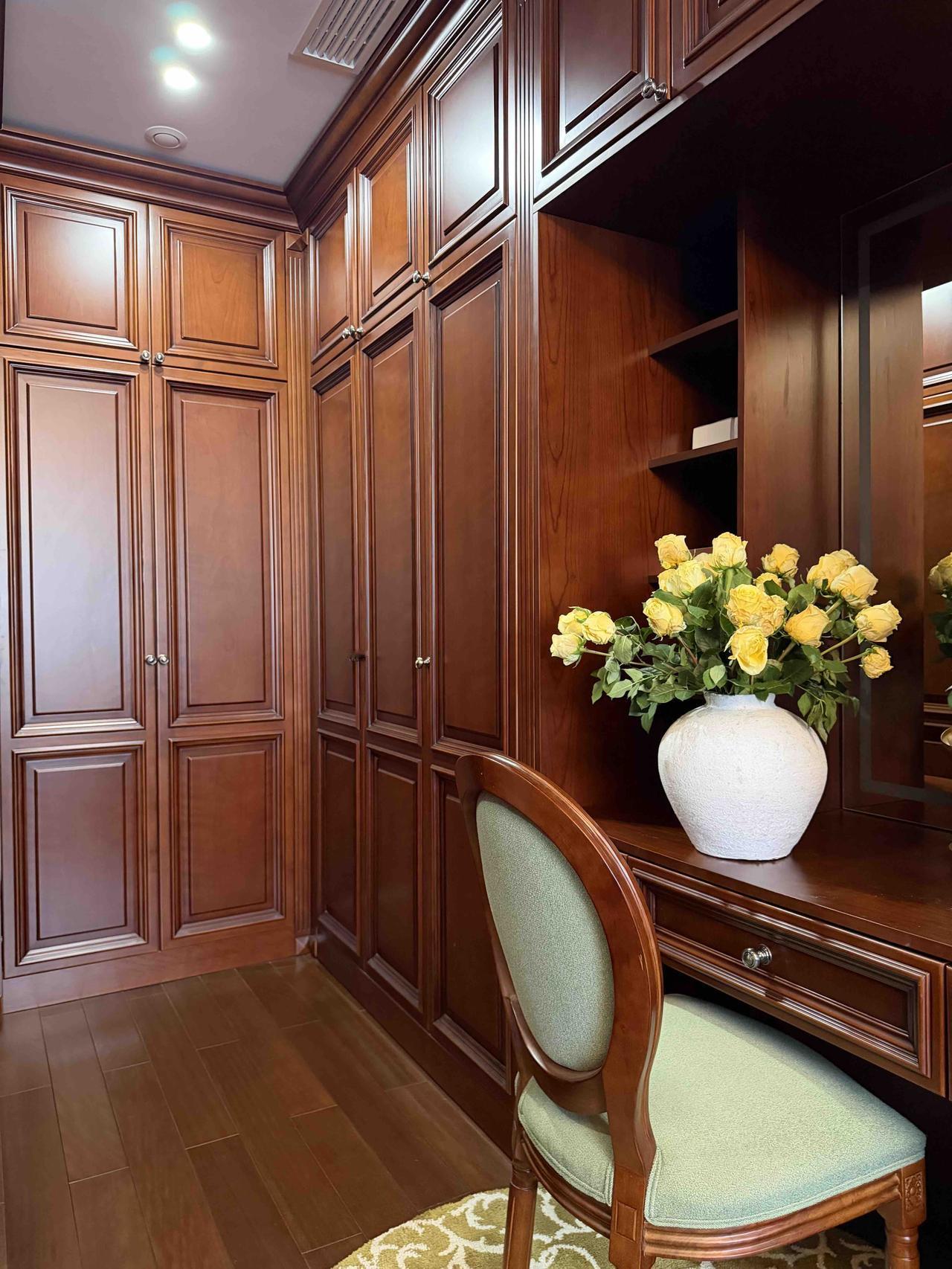 房子是联排别墅,上下三层,建筑面积256平米,装修花了大概100万,走的是美式复古风,有人管这叫老钱风,确实显贵,虽然是深色系,但整体简洁清爽,既有美式的自由随性,又不会觉得沉闷。