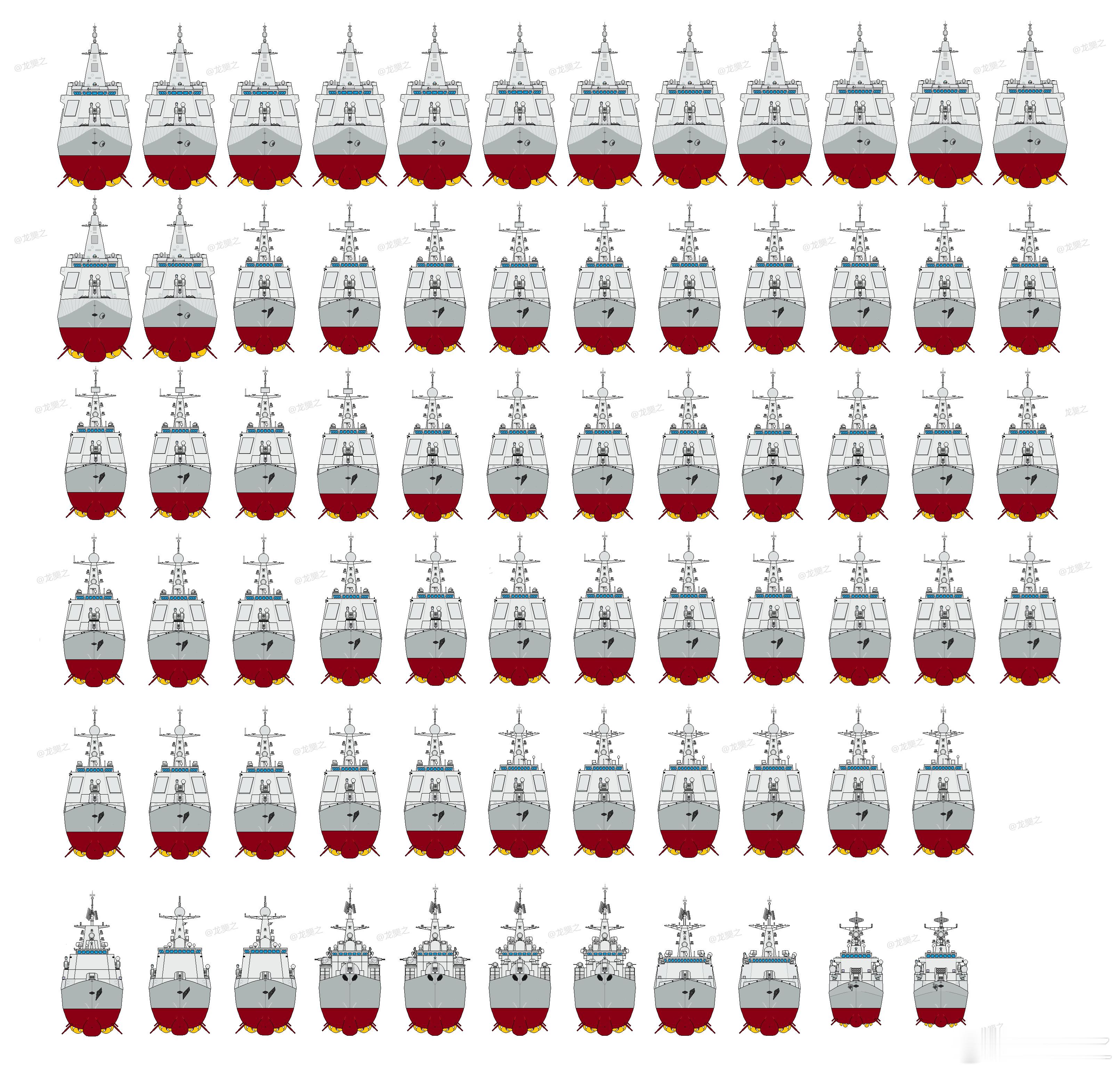 中国海军已下水驱逐舰一览图,总数量已达70艘、4704个垂发, 还未实现“对美七