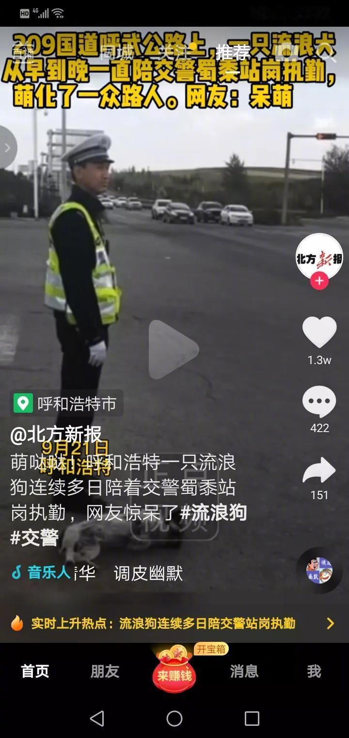 209国道呼武公路上,一条流浪狗一连好几天陪着交警站岗执勤,并且是从早到晚守着交警。可爱又可怜的狗狗。。。