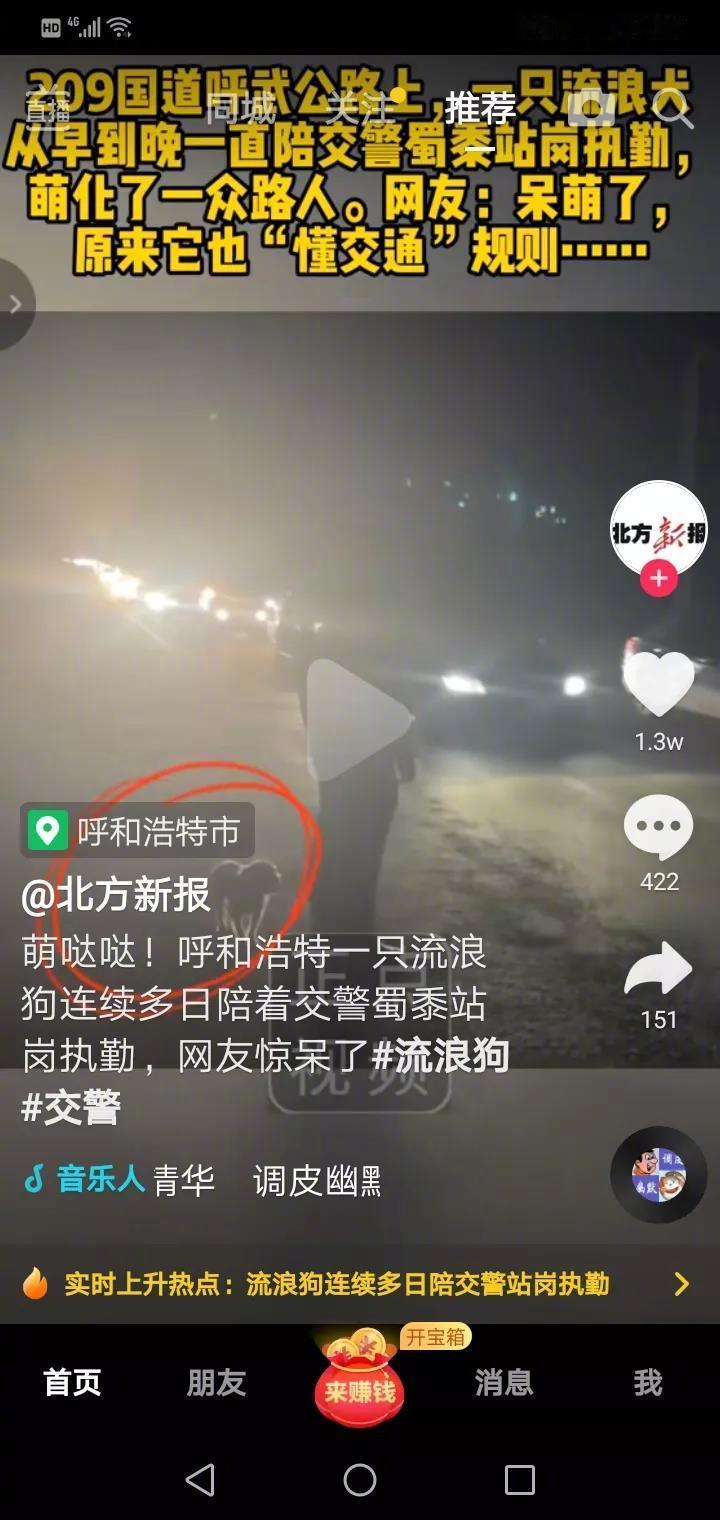 209国道呼武公路上,一条流浪狗一连好几天陪着交警站岗执勤,并且是从早到晚守着交