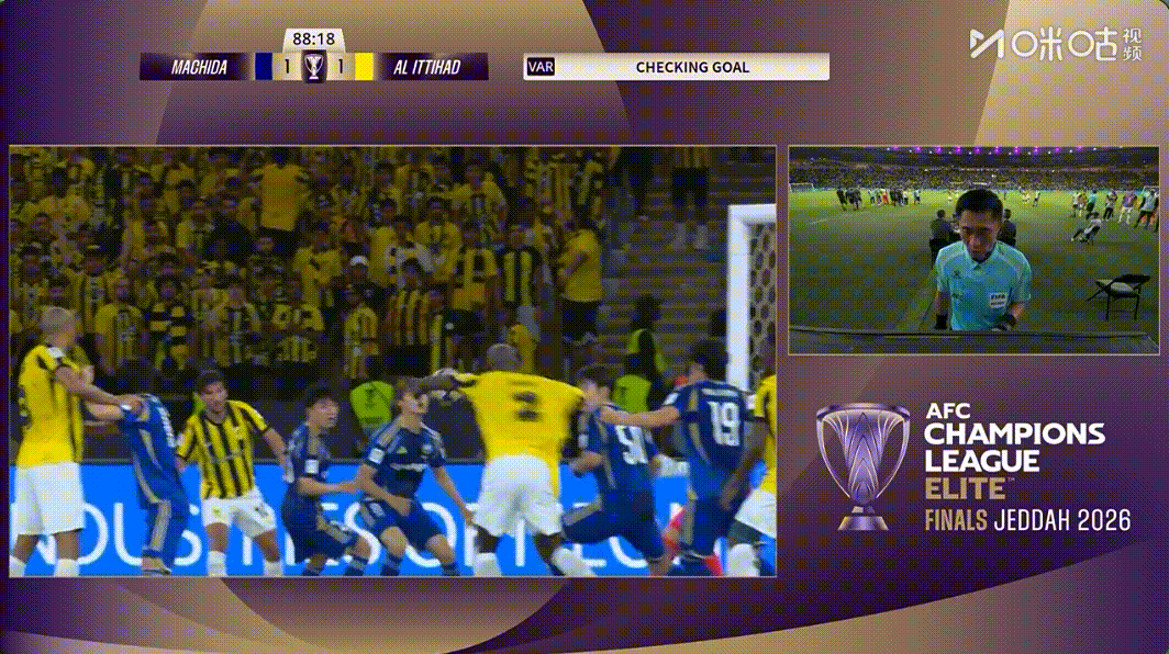 2 影响最大的争议,第86分钟,吉达进球,但是马宁看过回放后判定手球,取消了进球。算进双方1:1打平,很可能要加时甚至点球;不算进,吉达输球直接被淘汰。如图2 图3!