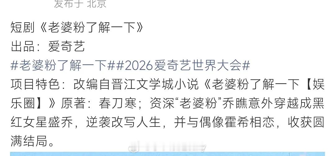 爱奇艺要拍老婆粉了解一下了,还是短剧