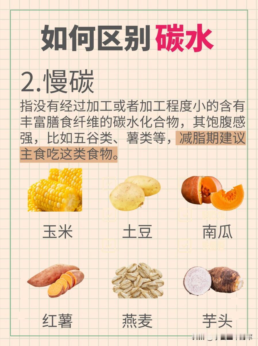 原来减脂期不是要戒碳水,而是要选对碳水。以前我总觉得西瓜、面包热量低,没想到它们也是快碳,吃了饿得快,血糖还容易波动。现在我会把主食换成慢碳,搭配优质蛋白和蔬菜,吃得饱还掉秤。
