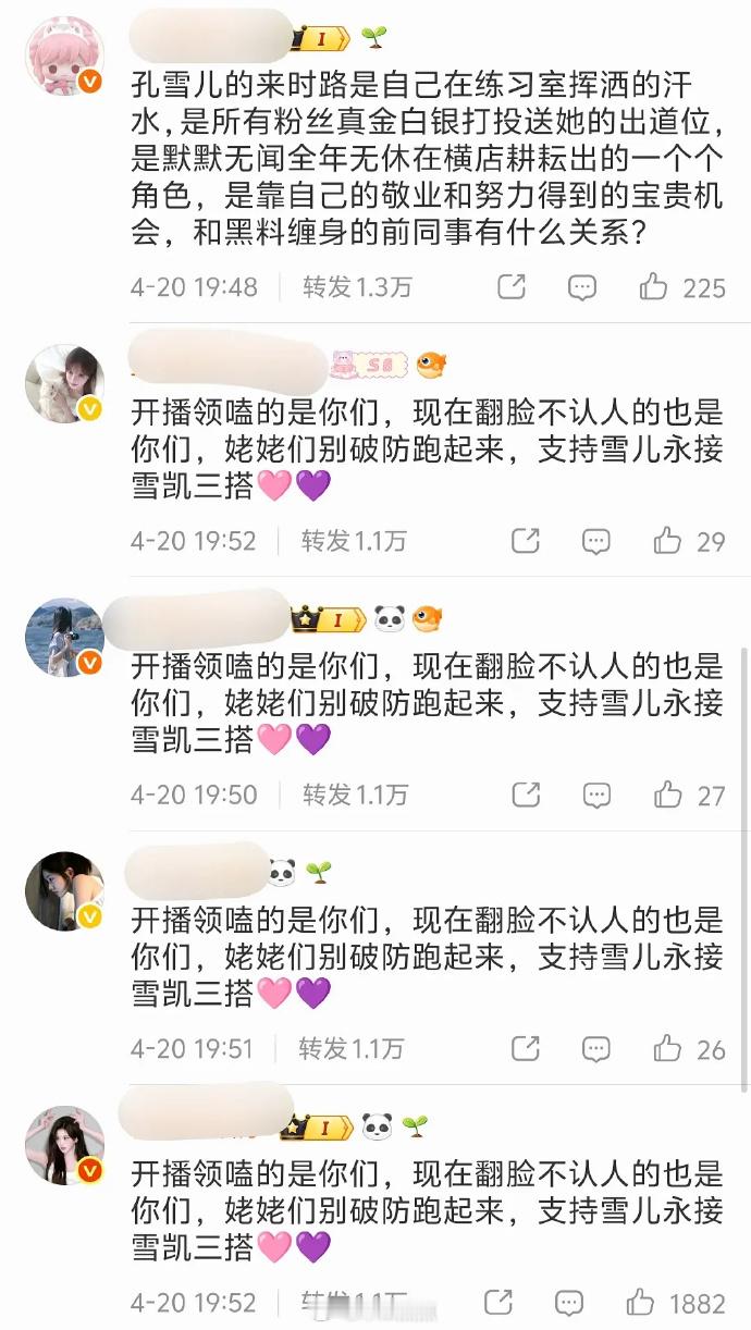 雪凯cpf和唯粉在孔雪儿工作室的评论区交流起来了