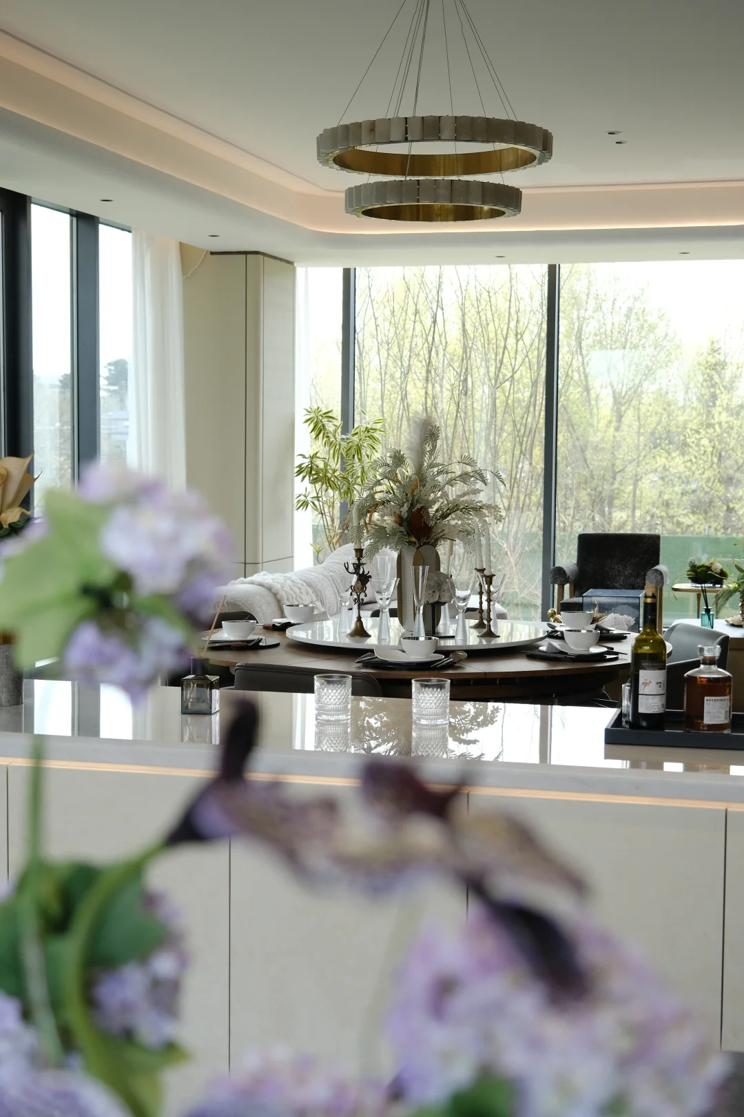 一整面环幕落地窗 阳光铺满全屋,城市风景随手框进眼里