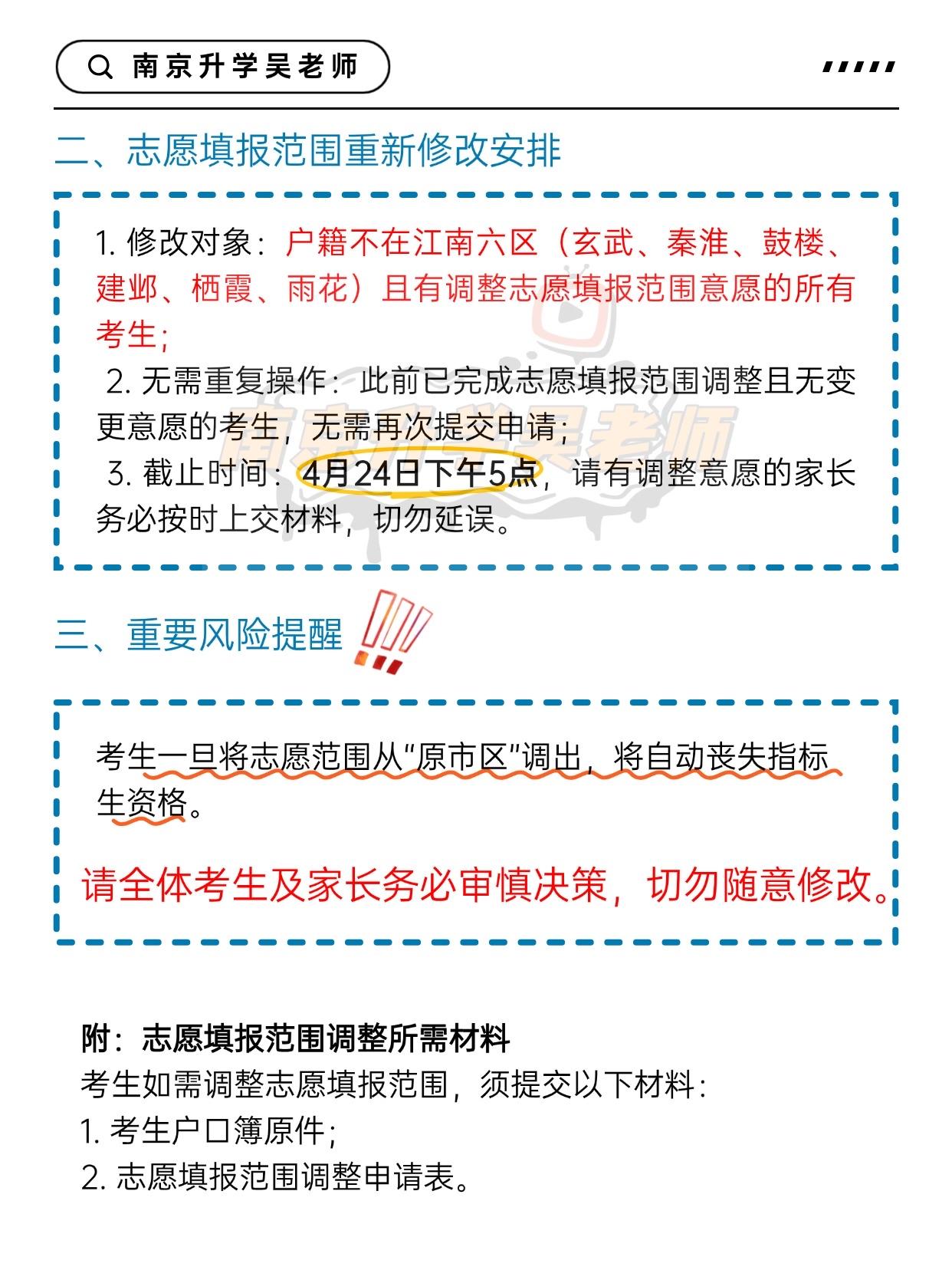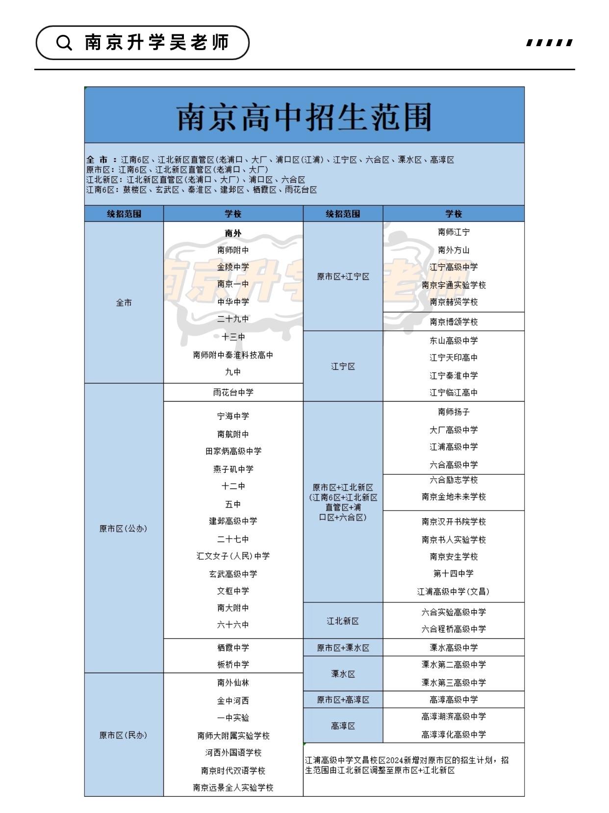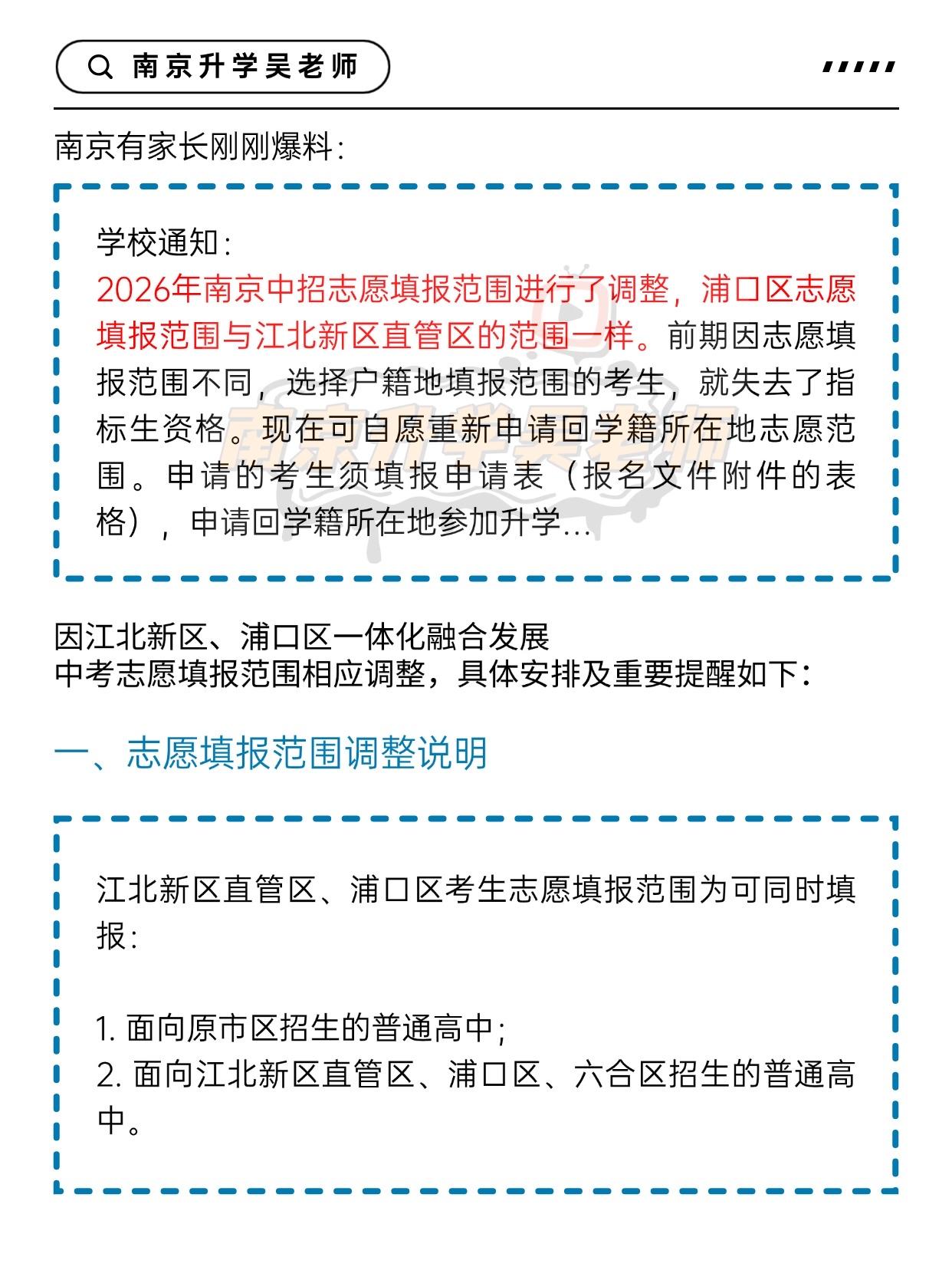 🤔学校通知:2026年南京中招志愿填报范围进行了调整,浦口区志愿填报范围与江北新区直管区的范围一样。
