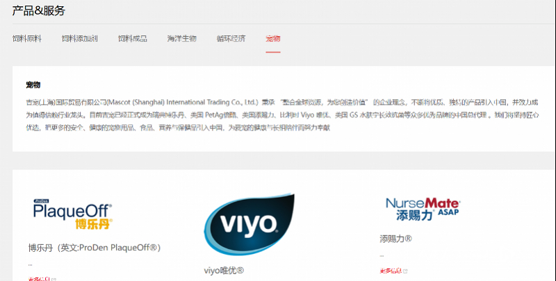 根据亘泰实业集团官网,该集团拥有饲料、海洋生物、循环经济和宠物四大业务板块。在宠物板块,吉宠(上海)国际贸易有限公司(下称“吉宠公司”)定位为各大品牌的进口经销商,目前,该公司已成为博乐丹、PetAg倍酷、添赐力、Viyo唯优、GS水肤宁长效抗菌等品牌的中国总代理。