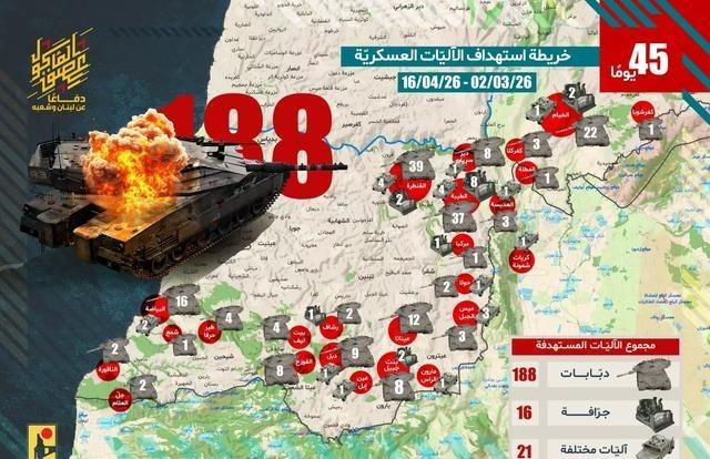 停火刚一落地,黎巴嫩真主党就公布了一份战果统计,整个战线范围内,他们一共敲掉了以色列各种型号的梅卡瓦坦克188辆。