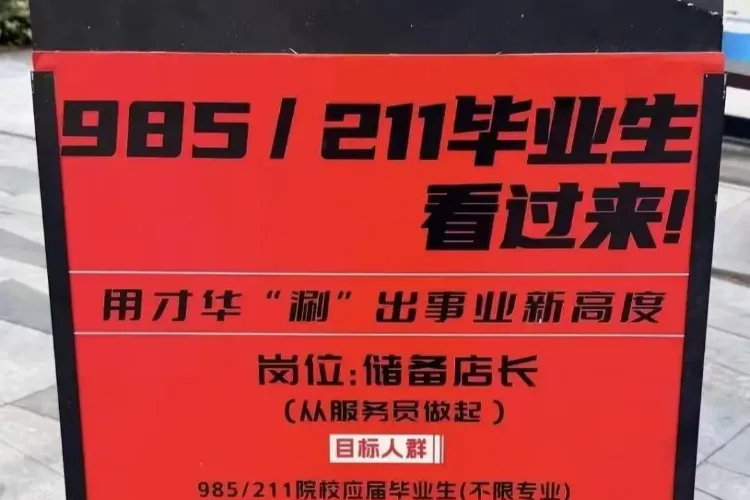 然而,当这则招聘信息被摆到街边、晒到网上,引发广泛讨论时,问题性质就变得微妙起来。公然打出“985/211毕业生看过来”的招牌,无论初衷如何,都难免带有炒作的意味。在传播学上,这种标签化的做法最容易制造话题——学历焦虑、大材小用,每一个关键词都能戳中社会的敏感神经。而事实上,这则新闻也确实迅速登上了热搜。店家是否乐见其成,甚至有意为之?恐怕只有他们自己心里清楚。