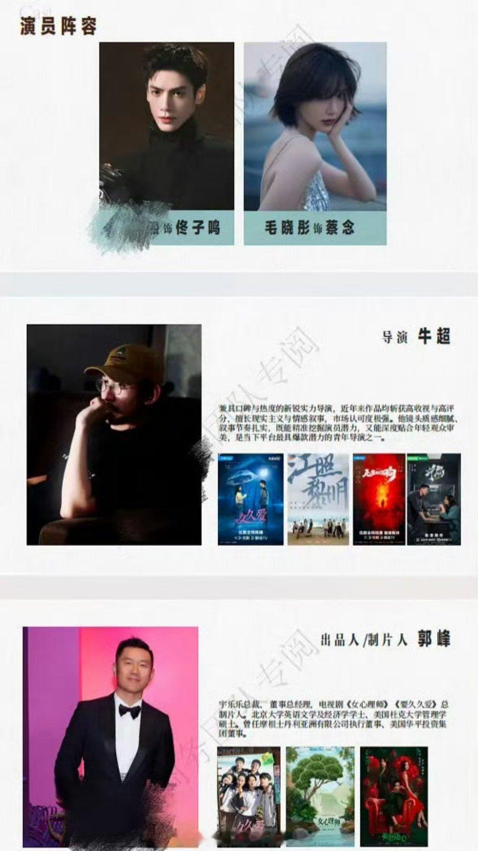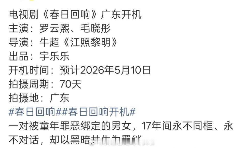 🍉🐧悬疑犯罪剧《春日回响》罗云熙,毛晓彤,五月开机故事简介好像白夜行,一对童年被罪恶绑定的男女,17年永不同框永不对话,互为羁绊