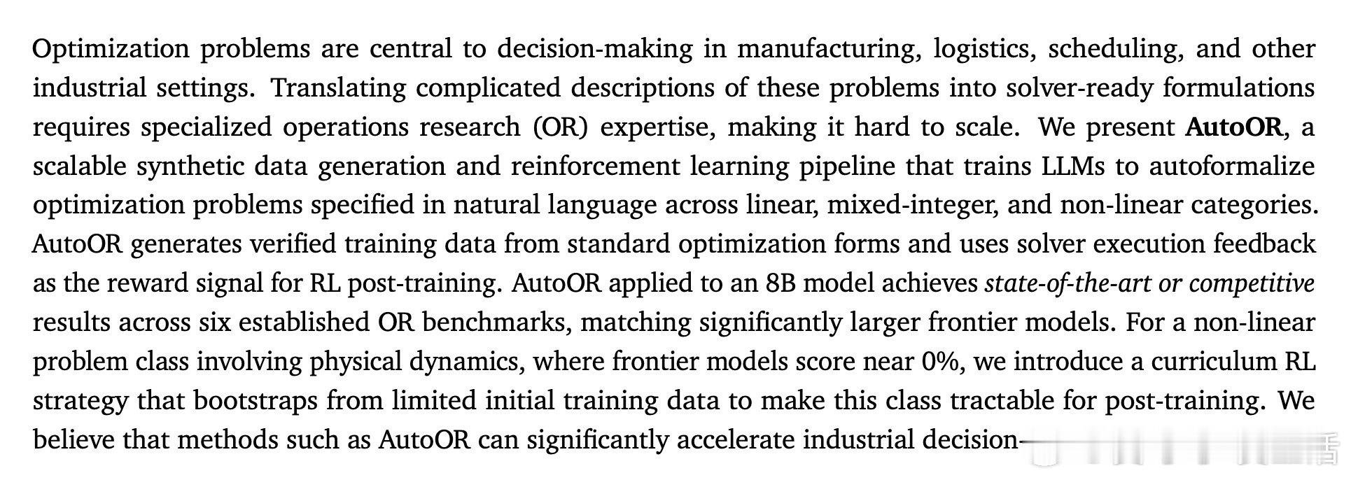 [LG]《AutoOR: Scalably Post-training LLMs to Autoformalize Operations Research Problems》S R Motwani, C Du, A Petrov, C Davis… [X, The Moonshot Factory & University of Oxford] (2026)